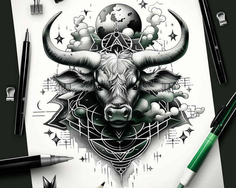 AI-generated tattoo project concept presented here centers on a dominant black and grey bull skull at the core, its sweeping horns anchoring an intricate web of geometric patterns that radiate outward in precise lines. The design is rendered in a fine line style with subtle grey shading and stippling to build depth while preserving a crisp, graphic silhouette. Surrounding the skull, a circular motif acts as a focal anchor, while star-like accents and angular planes contribute a sense of cosmic momentum and motion across the composition. The piece harmonizes traditional motifs—such as the bull skull and geometric geometry—with contemporary tattoo design language, delivering a bold black and grey aesthetic suitable for small to medium placements. For clients seeking a meaningful tattoo design that fuses symbolism with modern form, the concept carries resonance: the bull skull can symbolize resilience and endurance, the geometric pattern conveys order and symmetry, and the circle implies cycles or infinity when inked as a continuous motif. The work nods to Japanese linework and tribal tattoo sensibilities through deliberate spacing, negative space, and layered shading, while remaining adaptable to different skin tones and placements. As an AI-generated tattoo project, it invites customization: line weights, shading gradations, and scale can be adjusted to fit a specific body canvas, including optional motifs like lotus flowers or infinity ribbons if desired. Because the composition relies heavily on dark ink, it is particularly well-suited for cover-ups, capable of disguising older tattoos beneath a cohesive new black and grey design, and the strong contrast aids readability on various lighting conditions. In sum, this is a refined, pattern-rich tattoo concept that embraces fine line technique, bold geometry, and timeless symbolism while ensuring the tattoo design remains legible and impactful as body art. AI-generated note: this is an AI-generated tattoo project concept intended for inspiration and refinement by tattoo artists.