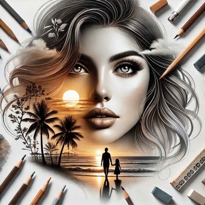 This concept presents a cohesive tattoo design that blends a realistic portrait with a cinematic shore scene. At its heart is a detailed grayscale portrait of a woman, rendered with soft shading and subtle line work to create lifelike depth. The surrounding composition unfolds as a warm sunset over a tranquil ocean, with stylized palm trees arching to frame the silhouette of a couple walking along the shore. The design relies on smooth gradients and negative space to balance the figure, landscape, and horizon, making it suitable for placement on the shoulder, back, or chest as a meaningful narrative piece. Key elements include the woman’s serene gaze, the radiant sun low on the horizon, the palm trees providing tropical framing, the distant couple adding a human story, and the reflective water that ties the composition together. Technique-wise, this piece leans toward black and grey realism with selective color accents from the sunset to enhance mood while preserving readability as a tattoo design. The narrative invites interpretation—themes of love, journey, and personal transformation—making it a strong option among meaningful tattoos, romantic tattoo design concepts, or a refined fine line tattoo project. It also serves well as a custom tattoo design for those seeking small to medium-sized body art, or as a larger piece that can evolve with additional motifs such as lotus or infinity symbols if desired. In the broader context of tattoo trends, this concept blends realism with illustrative composition and could be adapted to Japanese style tattoo sensibilities while remaining suitable for black and grey ink. For search optimization, keywords such as tattoo, tattoo design, meaningful tattoos, fine line tattoo, lotus flower tattoo, infinity tattoo, tribal tattoo, rose tattoo design, small tattoos, flower tattoos, custom tattoo design, Japanese style tattoo, black and grey, realistic tattoo, body art, and ink are relevant when describing this piece. As an AI-generated tattoo project, this concept demonstrates how digital ideation can translate into personalized ink-ready designs that studios can tailor to client preferences and body contours.