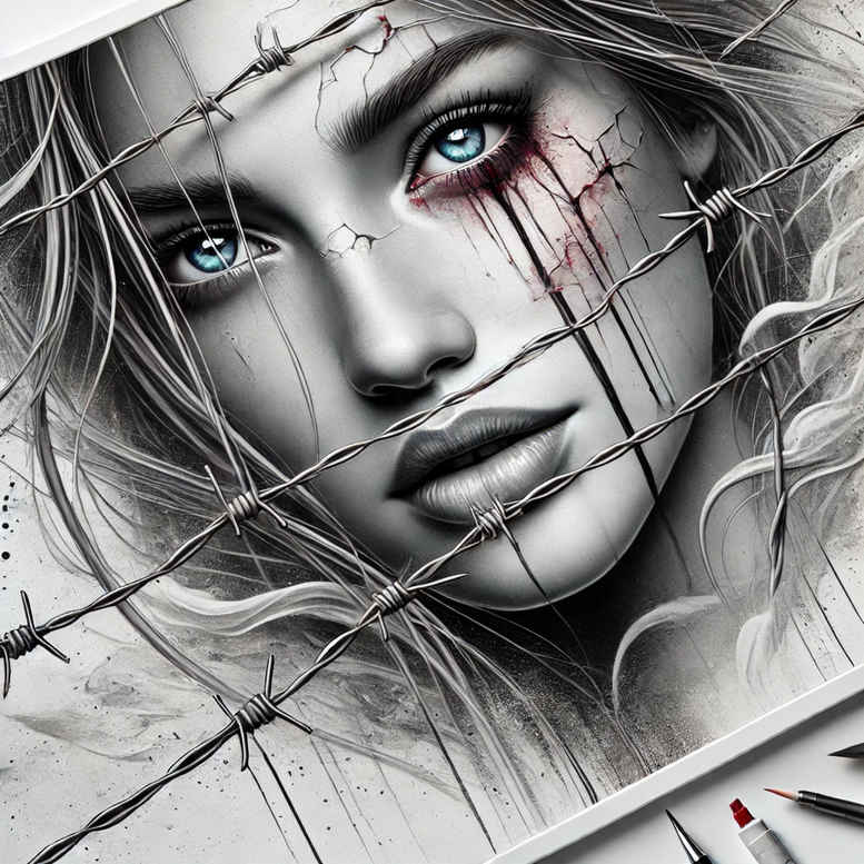 AI-generated tattoo project presents a highly refined, realistic black and grey portrait tattoo design that is ideally suited for cover-up work. The composition centers on a woman’s face rendered in subtle gradations of graphite-like shading, with crisp contour lines and soft transitions that mimic skin tones in grayscale. The gaze is direct and expressive, while vivid blue eyes peek through the monochrome palette, lending a striking focal point that remains feasible for tattoo execution. Hair threads sweep across the portrait, creating a natural frame and adding motion, texture, and contrast against the pale skin. A deliberate accent—slender streaks of red along one cheek—introduces drama and narrative without overpowering the composition, offering a dramatic means to conceal previous ink if used as a cover-up. The overall design emphasizes strong negative space and layered shading, allowing for seamless blending with existing tattoos while maintaining legibility on skin as it ages. Technique notes include controlled line weight, soft shading, stippling for subtle texture, and careful media pressure to preserve details in both fine lines and broader shadows. From a thematic standpoint, the piece merges portraiture with a slightly cinematic mood, suitable for meaningful tattoos or as a standalone statement piece in black and grey. As a cover-up option, the dense grayscale values and bold shadow areas are designed to mask underlying ink, while hair and line work help distribute pigment to create a cohesive finish. This concept straddles realism and modern tattoo design sensibility, aligning with Japanese-style influences and contemporary, fine-line aesthetics. For discoverability, the description threads in keywords such as tattoo, tattoo design, meaningful tattoos, fine line tattoo, lotus flower tattoo, infinity tattoo, tribal tattoo, rose tattoo design, small tattoos, flower tattoos, custom tattoo design, Japanese style tattoo, black and grey, realistic tattoo, body art, ink. The piece is presented as AI-generated tattoo project to showcase a forward-looking approach to cover-up ready body art.