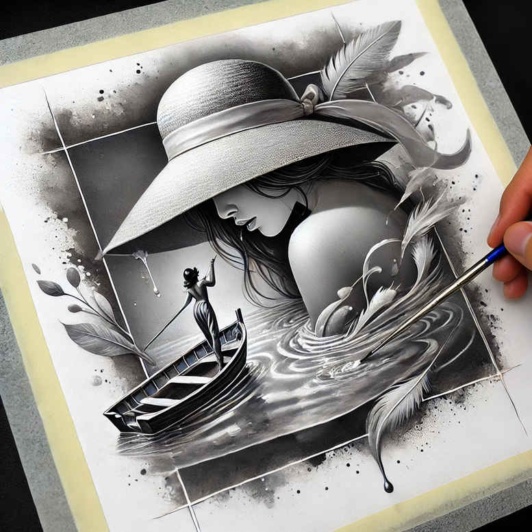 AI-generated tattoo project concept featuring a monochrome, black-and-grey composition of a shadowed woman in a wide-brim hat, a small boat, and curling waves beneath a full moon. Executed in fine-line precision, the piece emphasizes clean linework, gentle shading, and a cohesive silhouette that flows with the body’s natural contours. The central figure of a hat-wearing woman lends a timeless, cinematic mood, while the boat and waves introduce movement and narrative: a quiet voyage, a memory carried by the tide, and a reminder that life moves forward even in stillness. The moon behind anchors the design with balance and solitude, giving it strong foreground presence and versatile placement options for forearm, shoulder, or back. This concept explores duality—stillness and motion, light and shadow—through restrained contrast and subtle gradations of black and grey, adhering to a realistic yet stylized approach. Key elements include the woman, hat, boat, waves, and moon, all rendered with fine-line technique to preserve options for future personalization in a custom tattoo design. The piece can evolve toward a Japanese-style tattoo influence through bolder wave forms or become a more minimalist, fine-line rose or lotus motif for a separate sleeve concept. It speaks to meaningful tattoos and intimate symbolism, whether for tribute, memory, or personal myth. While this is an AI-generated tattoo project, it provides a solid foundation for a professional artist to refine with ink and skin texture. For cover-up applications, the soft edge of the waves can be extended to soften existing work, while the central silhouette remains crisp for lasting impact. Potential refinements include expanding the wave motif into a clouded pattern, adjusting line density for different skin tones, or introducing subtle floral accents like lotus or rose to tailor symbolism to the wearer.