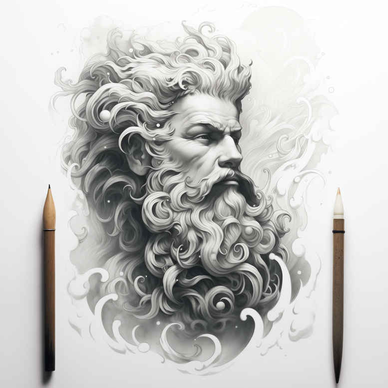 This AI-generated tattoo project presents a grayscale portrait study in black and grey, executed as a realistic tattoo design. A bearded man emerges with sculptural precision, his flowing hair curling into wisps of smoke that drift along the edges, creating a quiet sense of movement. The shading relies on refined gradients and fine line work to sculpt depth, contrast, and texture, producing a lifelike effect that remains suitable for a dedicated single-panel piece or part of a larger composition. Visible anchors—the portrait, the beard, the hair, the smoke, and the pencils at the base—ground the design as a study in ink technique and creative process. Symbolically, the bearded figure can represent wisdom, endurance, and the passage of time, while the smoke hints at impermanence and transition, all rendered in a monochrome palette to emphasize form over color. The black and grey approach reinforces a timeless feel, aligning with trends in realistic tattoo and fine line tattoo aesthetics, and it offers a strong foundation for a custom tattoo design aimed at meaningful tattoos. Potential placements include forearm, shoulder, or back, with scalable details that remain legible for small tattoos. This concept nods to broader tattoo genres, including Japanese style tattoo shading influences and traditional portrait approaches, while keeping options open for future additions such as lotus flower tattoo ideas or floral elements to build a cohesive sleeve. In sum, the piece showcases nuanced ink techniques, careful line control, and a mood that resonates with body art lovers seeking a sophisticated, durable portrait tattoo. It also invites viewers to appreciate the interplay of light and shadow, the tactile feel of skin, and the craft of needlework that underpins every tattoo design, making it a meaningful exploration for collectors and artists alike in the world of ink and body art.