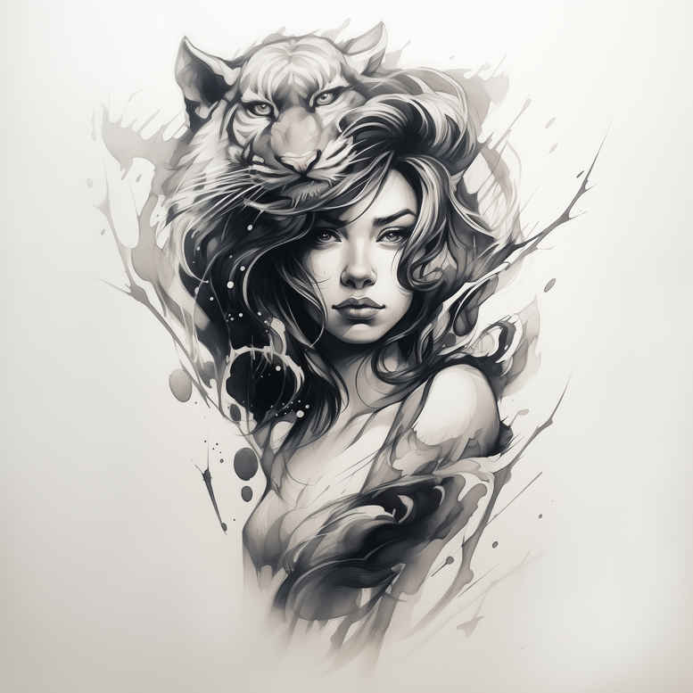 This AI-generated tattoo project presents a dark grayscale portrait rendered as a refined black and grey tattoo design, blending precise line work with painterly shading and ink splatters. The central figure is a woman’s face framed by flowing hair, with emphasis on expressive eyes and soft contouring; shoulders appear just beneath, while abstract splashes and petal-like shapes provide an atmospheric surround. This composition capitalizes on contrast, negative space, and layering to achieve depth and a sense of motion, evoking both realism and impressionistic atmosphere. The result reads as a versatile concept that can be adapted to different placements, from the upper arm to the back, and suits clients seeking a meaningful, dramatic centerpiece. In terms of symbolism, the portrait anchors identity and memory, while the surrounding pattern-like splashes hint at change, growth, and the ephemeral quality of ink on skin. The piece is ideal for a cover-up thanks to its dense shading around the subject and the ability to blend older scars or tattoos through careful line work and negative space. From a practical perspective, the design aligns with current tattoo trends in black and grey realism, fine line technique, and painterly composition, offering a rich canvas for customization. It also accommodates broader concepts such as lotus flower tattoo motifs, infinity tattoo ideas, or floral rose tattoo design extensions, all within a cohesive custom tattoo design language that transcends genre, whether in Japanese style tattoo influence, tribal accents, or modern body art. Ultimately, this portrait embodies depth and emotion, a powerful statement piece that can be scaled and tailored to suit individual anatomy while remaining crisp in black and grey ink, an enduring example of tattoo design as meaningful art. This work also speaks to the future of tattoo design as an AI-assisted exploration of aesthetics and meaning, a reminder that each project can be an AI-generated tattoo project with human artistry guiding the final execution. The narrative of beauty and resilience translates well into small tattoos or larger back pieces, preserving detail over time. Final touches can include subtle Japanese influences or refined tribal linework if requested by the client.