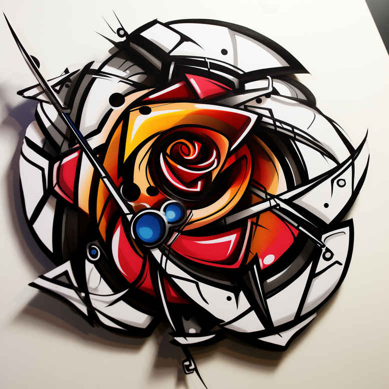 This AI-generated tattoo project concept fuses a luminous geometric rose with angular shards to merge floral meaning with contemporary linework, offering a visually striking template for a custom tattoo design. At the center, a vivid rose is rendered in saturated reds with hints of orange and subtle yellow, its petals defined by crisp black contour lines and filled with smooth gradients that create a sense of depth and vitality on the skin. Surrounding the bloom, interlocking shards and facets form a radiating frame, producing a graphic pattern that emphasizes contrast, negative space, and dynamic rhythm. The overall composition balances delicate line density with bold color blocks, a juxtaposition that echoes both traditional Japanese tattoo precision and modern bold line tattoo aesthetics, while remaining legible at small scales and impactful when scaled up for sleeve or back pieces. Symbolically, the rose stands for love, growth, and resilience, with the surrounding geometry representing structure, transformation, and breaking through constraints—an apt narrative for meaningful tattoos. The color palette leans toward energetic saturation, yet the design can be adapted to black and grey shading to suit different skin tones and preferences, preserving the clarity of the geometry while offering a more restrained, timeless option. In terms of technique, the concept envisions clean contour work, even color packing, and measured gradients to maintain crisp edges and minimal bleeding across applications. As a forward-looking AI-generated concept, it demonstrates how floral motifs can be reinterpreted through geometric patterning to yield a distinctive tattoo design, with potential for customization, style variations, and applicability to small tattoos as well as larger body art projects.