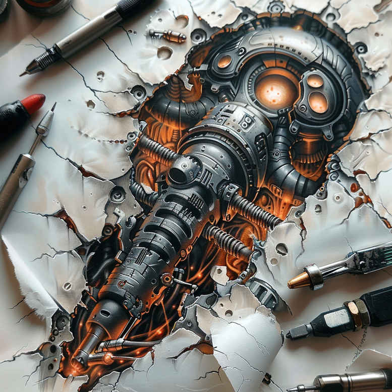This AI-generated tattoo project concept presents a highly detailed cybernetic head design built from interlocking gears, tubes, and a metallic mask. Rendered in black and grey with selective orange highlights, the piece emphasizes crisp line work, subtle shading, and a convincing chrome texture. The composition frames the head as a focal portrait, with gear clusters suggesting motion and mechanical resilience, while tubular conduits trace the neck and connect to a mask-like visage that reads as both sculptural and precise. From a tattoo design perspective, the concept blends realism with fine-line precision, using dense contrast where needed and lighter hatch work to create depth. The main motif is the cybernetic head, followed by gears, tubes, and the mask; together they form a cohesive biomechanical narrative that can be adapted to various placements. This design leans toward a style that suits large canvases yet remains legible in smaller areas through controlled line weight. The dark palette makes it an excellent cover-up option, as heavy shading can effectively obscure older ink while preserving intricate detail. Trademark influences include Japanese-style tattoo subtlety, modern biomechanical aesthetics, and a realistic approach to metallic surfaces, all of which translate well into a black and grey scheme with a bright orange accent to draw attention to key joints and vents. For clients seeking meaningful tattoos, the concept speaks to transformation and identity in a machine-inspired form, while remaining versatile enough for customization to individual body contours. Although AI-generated, this concept provides a strong, professional baseline for a custom tattoo design, easily refined by the artist to ensure safety, skin tone compatibility, and personal symbolism. The patterning of gears and tubes reads as both sculpture and circuitry, offering a cohesive, scalable motif suitable for small to large body areas, while maintaining legibility on skin through careful line weight and shading. In short, this is a cover-up-friendly, pattern-rich, fine-line inspired tattoo concept that blends realism with graphic machinery.