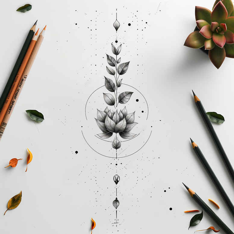 AI-generated tattoo project concept: a lotus mandala rendered in black and grey fine-line tattoo technique, designed as a vertical motif suitable for forearm, calf, or spine placements. The core is a stylized lotus blossom opening upward along a slender stem, with paired leaves and a geometric circle that contains a delicate mandala of dots, arcs, and micro-shading. The linework is crisp and controlled, emphasizing negative space to preserve legibility on skin while allowing gentle shading to impart subtle depth without overpowering the design. Surrounding elements include concentric rings and a subtle halo that lend a sense of balance and rhythm, making the piece easy to extend into a larger composition if desired. Symbolically, the lotus represents renewal and purity, while the mandala and circular rhythm hint at unity, continuity, and infinity—concepts that resonate with many meaningful tattoos. The arrangement supports optional additions such as a short script along the stem, a secondary flower in the outer ring, or a small infinity symbol to reinforce the theme. The design is intentionally versatile: it can be executed in pure black ink or adapted to a Japanese style tattoo with slightly bolder line weights, while maintaining the refined look of black and grey. As a demonstration of AI-generated tattoo projects, this concept showcases thoughtful layout, scalable line density, and a clear path from concept to a custom tattoo design that an artist can tailor to individual anatomy and skin tone. For clients seeking small tattoos with deep symbolism or for those exploring cover-up opportunities, the clean geometry and botanical elegance offer a strong foundation for personalization and future growth into a larger body of work in ink, body art, and tattoo design.