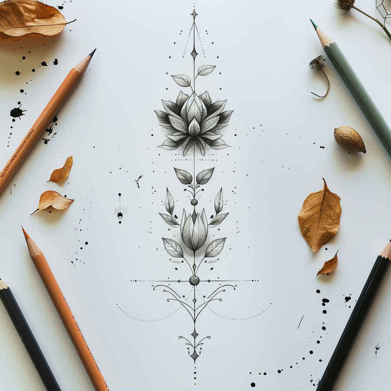 This AI-generated tattoo project presents a refined vertical motif rendered in black and grey, executed with a precise fine line technique. The central spine carries a sequence of elements that feel both botanical and ornamental: a slender stem, paired leaves, and small buds, all spaced with careful symmetry to create a quiet architectural rhythm on the skin. Subtle dotwork and micro-shading along the edges enhance depth without sacrificing the clarity of line work, yielding a design that remains legible at small scales or when expanded into larger panels. The recurring motif functions as a pattern of growth, echoing natural cycles while maintaining a contemporary aesthetic suitable for discreet placements along the forearm, wrist, spine, or rib cage. The composition embraces negative space to preserve breathable skin and ensures longevity of the ink, with crisp black lines that age gracefully in black and grey ink. Though simple in silhouette, the piece invites interpretation: it can symbolize renewal, continuity, and the quiet resilience of nature, or serve as a subtle companion to more complex pieces such as a lotus flower tattoo or rose tattoo design in a larger sleeve. The design aligns with fashion-forward trends in small tattoos and fine line tattoo, while offering a robust foundation for custom tattoo design that can be adapted into Japanese style tattoo forms or even a minimalist tribal-inspired accent. If translated into a full sleeve, the motif can be extended with additional branches, blossoms, and geometric motifs to form a coherent body of work, all executed in black and grey to emphasize ink reliability and skin tone compatibility. As with many AI-generated tattoo projects, the concept showcases precise spacing, proportion, and patterning that professional tattoo artists can refine for a personal client, making it an appealing starting point for meaningful tattoos that celebrate growth and life in a refined, timeless manner. Keywords across the spectrum: tattoo, tattoo design, meaningful tattoos, fine line tattoo, lotus flower tattoo, infinity tattoo, tribal tattoo, rose tattoo design, small tattoos, flower tattoos, Japanese style tattoo, black and grey, realistic tattoo, body art, ink to underscore the work’s relevance to contemporary body art discourse.