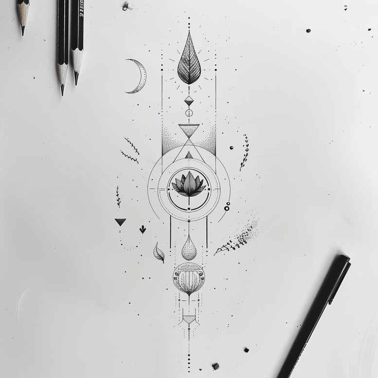 This is an AI-generated tattoo project concept featuring a geometric eye mandala rendered in a refined black and grey palette using fine-line technique. The composition centers on a lifelike eye motif, set within stacked circles, delicate arcs, and a vertical axis of symmetrical elements that radiate into a mandala-inspired pattern. The visible components—eye, circle, line, arc, dot, triangle, crescent, and mandala—form a disciplined geometry that communicates themes of perception, protection, and inner awareness. Executed as a precise line work study, the piece relies on ultra-fine needles to achieve clean lines, minimal shading, and crisp contrast, making it well suited for small tattoos and scalable layouts that could extend into larger body art. Although conceived as a standalone tattoo design, the concept is easily adaptable to different genres, from Japanese-style tattoo influences to tribal linework, from realistic shading to pure black-and-grey geometry. The AI-generated origin underscores its experimental, design-forward nature and makes it a stepping stone for a custom tattoo design workflow, offering a template that clients can customize with personal symbols, such as lotus flower tattoo elements or floral accents, to heighten meaning. The pattern-dense arrangement invites interpretation around cycles, sight, and mindfulness, while its modular structure supports placement on the forearm, calf, or spine with proportional balance. In the current fashion of meaningful tattoos, this design is a versatile study in line economy, negative space, and ink longevity, and it demonstrates how modern tattoo design can fuse sacred geometry with contemporary aesthetics for a striking, durable piece. From a production perspective, the design offers scalable guidance for artists, enabling adjustments to density, line weight, and fill to suit different skin tones and body placements, while preserving the cleaner lines that define fine-line tattoo work. This concept sits at the intersection of body art and graphic design, aligning with trends in black and grey ink, minimalism, and meaningful tattoos, and it invites further exploration into lotus flower accents, infinity motifs, or subtle Japanese-inspired detailing for a customized, timeless tattoo experience.