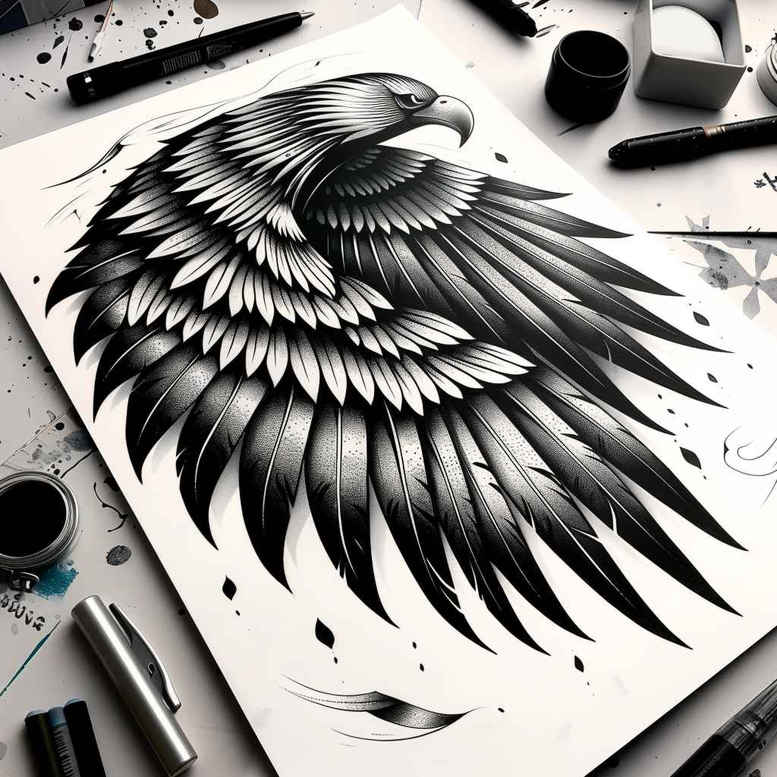 An AI-generated tattoo project concept featuring a densely shaded wing of layered feathers drawn on white paper. The study emphasizes composition, line work, and tonal balance to render a bold black and grey feather motif suitable for a cover-up. The design unfolds as a sweeping arc that could wrap the shoulder blade or upper arm, with each feather outlined in crisp lines and shaded to create depth. The main elements are wing, feather patterns, and negative space that allows the piece to age gracefully on skin. The piece uses fine line technique to build feather texture while maintaining readability at small scales; this makes it versatile as a small tattoo or larger piece. The work leans into a realism-inspired rendering of plumage, yet remains stylized to function as a tattoo design that transitions well when inked in black and grey. This tattoo design explores symbolism of ascent, protection, and freedom. For a potential client seeking a meaningful tattoo, the wing can symbolize personal growth or guardianship. The pattern of feathers creates a rhythmic motif that reads as motion and life. As a cover-up concept, the dense black shading provides ample cover for existing ink while preserving feather detail. This project is part of an AI-generated tattoo concept series and demonstrates how careful shading can transform a dark surface into a striking piece. Given the dense shadows, this concept is ideal for a cover-up. The language of the feather pattern invites the wearer to interpret the piece as a narrative of resilience, while the negative space allows tattoo artists to adapt scale and placement. The design can be executed in traditional black and grey ink or adjusted to a finer, more graphic interpretation. In practice, this wing motif pairs well with Japanese style tattoo influences or a more tribal approach, depending on placement and client goals. SEO keywords woven into the description include tattoo, tattoo design, meaningful tattoos, fine line tattoo, lotus flower tattoo, infinity tattoo, tribal tattoo, rose tattoo design, small tattoos, flower tattoos, custom tattoo design, Japanese style tattoo, black and grey, realistic tattoo, body art, and ink. This approach preserves the integrity of the feather pattern while offering a flexible template for cover-up workflows; artists can adjust density to hide underlying tattoos or scars while preserving legibility of the wing.