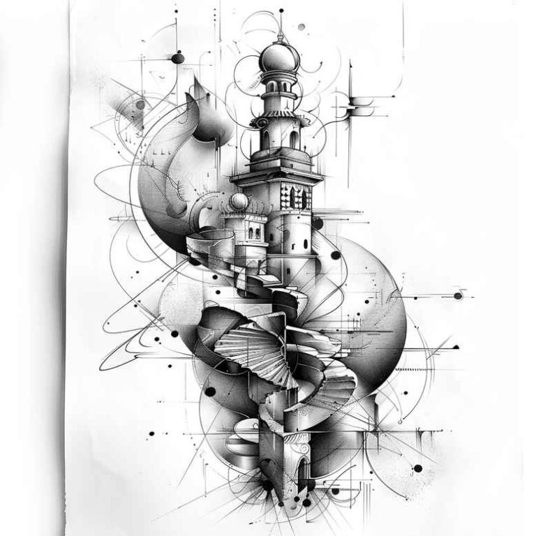 AI-generated tattoo project presented as a sophisticated cover-up candidate, this composition merges architecture, moonlit symbolism, and geometric discipline into a single vertical canvas. The focal beacon is a tower-like structure rising through a crescent moon, rendered in black and grey with a delicate interplay of light shading and crisp line work. Surrounding the spine of the piece are intersecting circles, arcs, and lattice motifs that echo orbital diagrams and architectural blueprints, creating a dense graphic pattern that rewards close inspection. The contrast between the soft gradient shading and the hard-edged geometry creates a dynamic tension reminiscent of Japanese-inspired and tribal tattoo design sensibilities, while the overall silhouette remains suitable for small or large placements. The piece balances literal imagery and abstract ornamentation, allowing the reader to read a narrative of ascent, time, and transformation, with some elements evoking infinity and cyclical renewal through circular motifs and spiraling accents. For someone seeking a meaningful tattoo design, this concept channels themes of endurance and renewal via a black and grey palette that reads as timeless body art. The composition is well-suited to a cover-up due to its dense negative space and heavy dark regions that can obscure prior marks while still offering sharp line fidelity for future work. The piece embraces fine line tattoo techniques, high-contrast shading, and controlled stippling to deliver a refined texture across skin. In terms of style, it nods to modern, graphic realism with subtle nods to Japanese and oriental influences through the disciplined line work and symmetry. The resulting tattoo design is a versatile platform for personal symbolism—whether one chooses a lotus flower tattoo, an infinity motif, or a rose tattoo design integrated within a geometric framework. As an AI-generated tattoo project, it demonstrates how digital concept art can translate into an ink-ready blueprint for dedicated tattoo studios, with careful attention to scale, placement, and long-term legibility. If the client desires a darker cover-up, the pattern-rich core provides ample density to mask underlying marks while preserving the integrity of future additions.