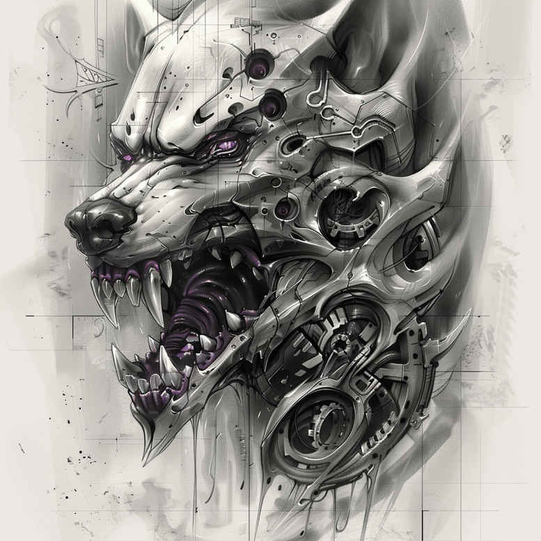 This description accompanies an AI-generated tattoo project concept that fuses a dragon head with biomechanical gearwork in a dense black and grey composition. The central figure is a snarling dragon head whose jagged teeth and horned silhouette are interwoven with gears, cogs, and tubing, creating a single, cohesive form that reads as both creature and machine. Subtle crosshatching and soft gradient shading sculpt the musculature and metallic elements, delivering a realistic look while preserving high contrast for strong visibility on skin. The design relies on graphic patterns: circular gear motifs, linear mechanical lines, and shadowed negative space that add texture and depth. Elements such as the dragon head, gear, skull-like jaw, cog, and tube are arranged to guide the eye along a dynamic silhouette, making it suitable for large panels or bold placements. Symbolically, the dragon conveys power, protection, and transformation, while the gearwork alludes to precision, resilience, and reinvention—narratives that resonate as meaningful tattoos and fits well into a modern black and grey or fine line tattoo approach. For practitioners, it offers clear layering opportunities and consistent shading strategies, enabling a cover-up by harmonizing existing ink beneath a new, dense veneer of shadow and line work. The piece serves as a versatile template for small to large applications, including chest, back, or sleeve work, and adapts to Japanese style tattoo influences when the artist tweaks line weight and gradient. As an AI-generated tattoo project concept, it demonstrates how mechanical motifs and organic forms can be integrated into tattoo design, producing a striking body art outcome that remains timeless, ink-compatible, and highly marketable in the realm of custom tattoo design, black and grey realism, and pattern-driven compositions.