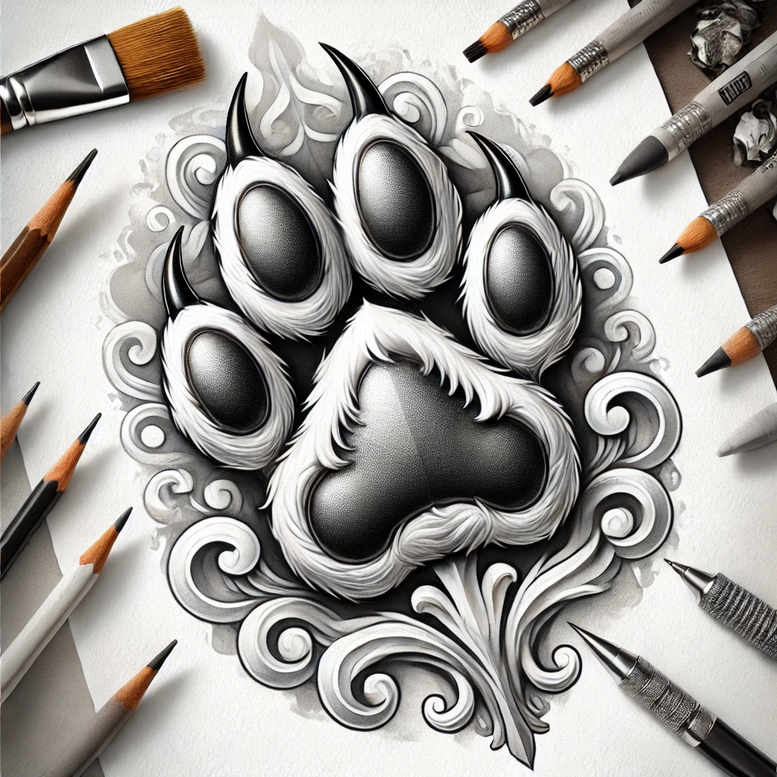 This tattoo concept presents a meticulously crafted paw print rendered in black and grey with a lush veil of ornamental swirls that weave through the pads. The design sits at the crossroads of fine line tattoo technique and decorative pattern work, offering a versatile tattoo design that can anchor a small tribute or expand into a larger piece while remaining clearly legible. The central paw is built with bold outlines and smooth shading to achieve a sense of depth and realism, while the surrounding scrollwork functions as intricate patterning that adds texture without overpowering the core emblem. Symbolically, the paw print can signify loyalty, companionship, and a beloved pet memorial, turning a personal memory into a meaningful tattoo that can be worn as a daily reminder or a celebration of presence. The black and grey palette supports subtle gradient transitions and crisp line work, ensuring longevity and compatibility with diverse skin tones. For tattoo artists, the motif offers opportunities to explore both traditional and contemporary interpretations—ranging from a clean fine line treatment to a more Japanese style tattoo influence through adjusted line weights and balance. In terms of placement, this concept is well-suited for small tattoos on the wrist, ankle, or behind the ear, yet it also scales gracefully for larger canvases if a full ornamental panel is desired. The image surrounding the paw emphasizes the studio-ready nature of the idea, suggesting it as an ink candidate for custom tattoo design commissions. As an AI-generated tattoo project, it serves as a spark for collaboration and refinement, inviting clients to modulate the swirl density, add symbolic elements such as lotus or infinity motifs, or tailor the piece toward a floral theme like rose tattoo design. Overall, the piece demonstrates how a simple animal emblem can be elevated through patterning and shading into a refined body art study, aligning with keywords and trends in small tattoos, flower tattoos, black and grey ink, and meaningful tattoos.
