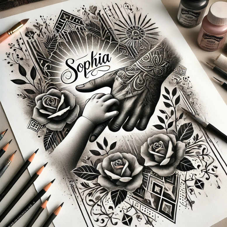 AI-generated tattoo project concept featuring a hand cradling roses and a surrounding geometric pattern, rendered in black and grey linework. The hand is modeled with precise contouring and soft shading to convey volume, while the roses provide delicate petals that contrast with the angular geometry. This tattoo design study emphasizes a balanced fusion of natural motifs and mathematical motifs, suitable for both small tattoos and larger commissions. The composition centers on the rose tattoo design as a symbol of love, memory, and renewal, with the hand representing care and intention; the geometric pattern adds structure, rhythm, and modern edge. Executed in black and grey ink, the piece relies on fine line technique and gradient shading to achieve depth and longevity on the skin; the result can be interpreted as a realistic tattoo with careful line weight. The concept invites customization: the number of roses, the density of the pattern, and the size can be adjusted to fit placements from inner forearm to sleeve. For clients seeking a Japanese style tattoo influence, a subtle adaptation of line weight and motif scale can preserve the essence while nodding to traditional aesthetics; alternatively, it can veer toward a tribal tattoo feel with more angular geometry. This flexible template works for meaningful tattoos and custom tattoo design explorations, combining flower tattoos with geometric body art in a timeless black and grey palette. As an AI-generated concept, it serves as a practical starting point for tattoo artists and clients to refine a personal, symbolic piece, with potential additions such as a lotus flower tattoo or infinity motif to express ongoing growth or eternal love. The design remains legible at small scales yet has depth for larger commissions, highlighting the interplay of ink, linework, and shading that defines a modern tattoo project and reinforces the enduring appeal of rose tattoo design, lotus and infinity motifs, and geometric pattern work in black and grey ink as body art.