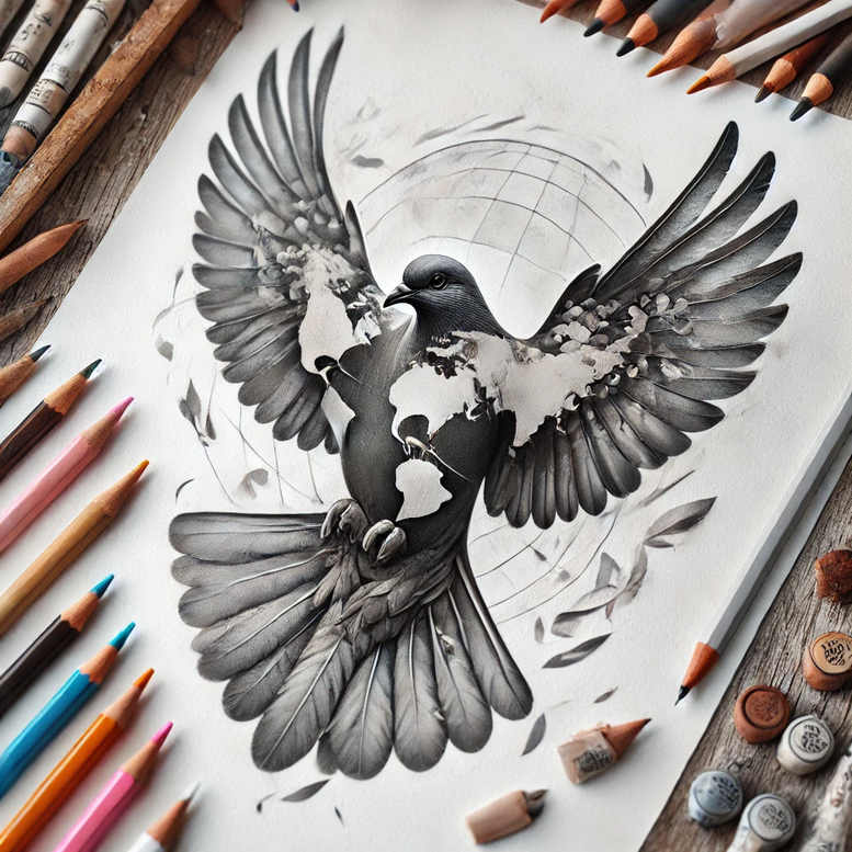 This piece presents a black and grey realism tattoo concept featuring a dove in full flight, its chest subtly mapped with a world map motif. The bird’s wings are rendered with soft gradients and meticulous feather detailing that convey motion and grace, while a circular grid backdrop and faint geometric lines frame the composition. Leaves arc around the wings, providing natural counterpoint to the smooth grayscale shading. The symbolism blends peace, travel, and global connection, turning the dove into a messenger of journeys and memory. Executed in high-contrast black and grey realism, the design relies on layered shading, fine line feather work, and careful edge control to preserve legibility on skin across sizes. The world-map chest motif reads as a subtle map rather than a literal cartography, inviting personal interpretation while anchoring the theme of exploration. The circular motif behind the bird functions as a modern frame, echoing mandala-inspired geometry without overpowering the central figure, creating a pattern-like texture that remains cohesive with a contemporary tattoo aesthetic. Because the composition leans toward a dark, dense aesthetic, it is an excellent option for a cover-up, offering strong contrast to blend or cover existing ink while preserving the dove’s central narrative. This is an AI-generated tattoo project, presented as a concept that can be refined by a skilled artist into a refined custom tattoo design. For practitioners and clients, the piece demonstrates how black and grey realism can host rich symbolism—the dove, the world map, and the circle—while accommodating variations such as fine line detailing or bolder shading to fit body contours. Potential applications include back pieces, chest panels, or sleeve elements, and it resonates with fans of meaningful tattoos, small tattoos adaptations, and larger statement works alike. In short, the design embodies the fusion of nature and geometry in tattoo design, offering a timeless yet modern take that can be translated into a personal, inked story. Keywords spanning tattoo, tattoo design, meaningful tattoos, fine line tattoo, lotus flower tattoo, infinity tattoo, tribal tattoo, rose tattoo design, small tattoos, flower tattoos, custom tattoo design, Japanese style tattoo, black and grey, realistic tattoo, body art, ink.