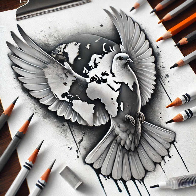 Rooted in the sacred symbol of the Holy Spirit, this tattoo gallery presents a grayscale concept in which a white dove soars above a world map that forms the contour of its body, a meditation on guidance, peace, and universal faith. Rendered in black and grey realism with careful layering, the dove’s wings unfurl in balanced curves, while the map is hinted through negative space and subtle tonal shifts, creating an integrated motif that reads as both movement and meaning. The composition leans toward a circular canvas, with soft feather lines and a restrained contrast that preserves skin tone as part of the artwork; the sketchy pencil-sourced texture around the edges reinforces the sense of an ongoing project/idea, a nod to a possible future expansion into a sleeve or back piece. The symbolism is explicit: the white dove embodies the Holy Spirit and purity, messenger of divine guidance, while the world map speaks to universal reach and the idea of faith guiding humanity across borders. This tattoo design blends realism with a touch of illustrative spontaneity, making it a meaningful tattoos choice for those seeking a compact yet potent piece. The black and grey palette emphasizes texture and form, allowing the continents to glide beneath the feathered architecture without overpowering the subject; it also ensures longevity of the ink and readability of the design in the long term. As a custom tattoo design, it suits both small tattoos on the wrist or chest and larger applications on the shoulder and back, where the curvature of the body can enhance the dove’s ascent. The quiet energy of this composition resonates with tattoo lovers exploring symbolic ink, personal narratives, and timeless imagery; the artwork speaks to ink as a form of body art, a record of faith and resilience, and a reminder of spiritual guidance. This concept is informed by AI-generated illustration processes that help visualize the fusion of sacred symbol and cartographic motif, inviting a modern voice to tradition while maintaining a reverent tone.