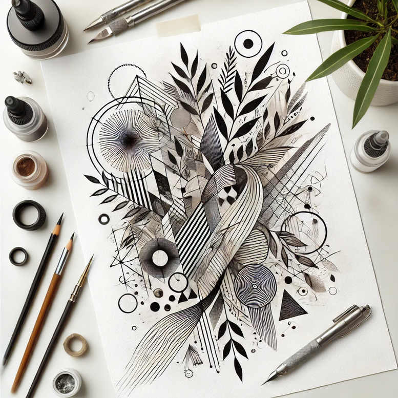 AI-generated tattoo project concept presented in a professional, magazine-style description. The piece centers on an intricate geometric botanical linework, rendered in black and grey with a focus on precision, rhythm, and balance. A dense cluster of leaf forms serves as the organic core, each leaf drawn with crisp, fine lines that convey a sense of movement and growth. Interwoven with the foliage are geometric motifs: circles and rings that create orbital paths, triangles that introduce angular contrast, and arcs that guide the eye through the composition. The layering of straight and curved lines yields a solar-plexus of motion, where negative space is as deliberate as the inked elements, producing a harmonious interplay between nature and geometry. This design emphasizes fine line tattoo technique, relying on delicate line weights, clean transitions, and subtle shading to achieve depth without heavy saturation. While modular in structure, the concept can be adapted for small tattoos or expanded into a larger sleeve, serving as a cohesive base for pattern-rich body art. Symbolically, the leaves evoke growth and resilience, while the circles imply continuity and cycles, and the triangles suggest precision and direction. As a meaningful tattoo design, it fits within fashionable themes such as flower tattoos and botanical motifs, yet remains distinctive through its abstract, geometric arrangement. For studios and clients exploring custom tattoo design, this AI-generated concept demonstrates how algorithmic inspiration can translate into versatile ink-ready foundations. Keywords to consider include tattoo, tattoo design, meaningful tattoos, fine line tattoo, lotus flower tattoo, infinity tattoo, tribal tattoo, rose tattoo design, small tattoos, flower tattoos, custom tattoo design, Japanese style tattoo, black and grey, realistic tattoo, body art, ink.