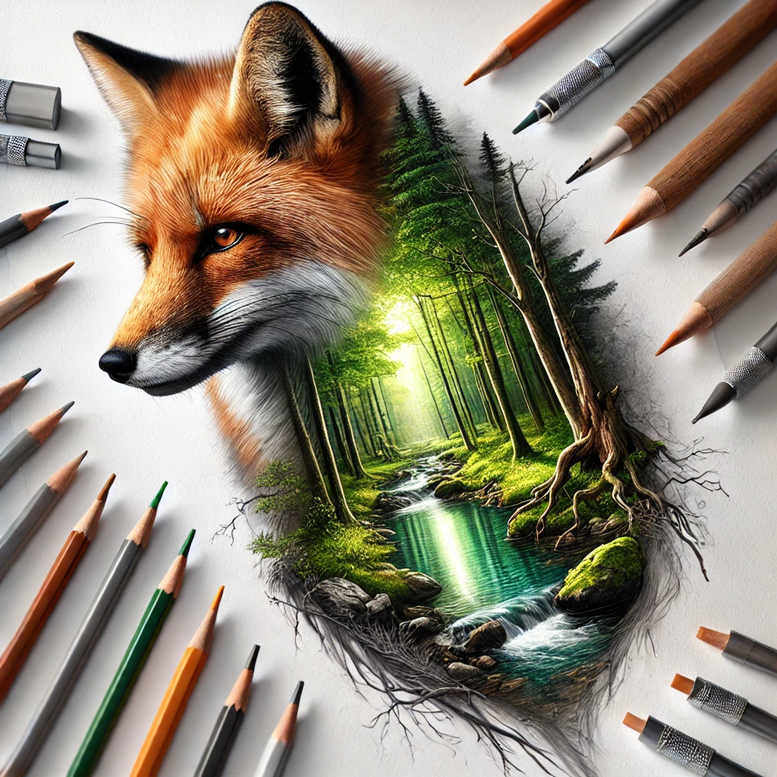 An AI-generated tattoo concept that blends a fox head with a verdant forest and a glimmering stream, designed as a seamless, single motif for shoulder, chest, or sleeve placement. The centerpiece is a lifelike fox head, its orange fur rendered with fine shading and crisp highlights, gaze directed to the left. Emerging from behind the animal is a forest scene: tall pines, slender trunks, and a sunlit clearing that brightens a stream running toward the foreground. Mossy rocks line the riverbank, while exposed roots twist around the composition, suggesting the woods intrude into the skin. The overall design uses a colored-pencil aesthetic, with soft gradients, feathered fur texture, and careful attention to light reflections on water, creating depth while maintaining a natural, painterly energy. Symbolically, the fox embodies adaptability and wit, while the forest and stream symbolize growth, renewal, and the flow of life—an alliance between cunning and nature. From a tattoo design perspective, the piece balances delicate line work—fine lines for fur, leaves, and water ripples—with broader color blocks to create contrast and legibility on skin. The colors are warm and earthy, with greens, browns, and turquoise accents to emphasize vitality and movement. If scaled up, the work can become a dramatic full-sleeve or back-piece; if kept small, the key elements translate into a compact, meaningful tattoo design. In the context of AI-generated tattoo projects, this concept provides a contemporary starting point that tattoo artists can customize, adapt to different placements, and adjust line weights, shading, and color saturation. For clients seeking a cover-up, the bold silhouette, dense contrast around the fox’s jaw and forest edge, and the flowing stream offer ample opportunities to mask previous tattoos while preserving a striking wildlife scene. Overall, this design merges nature-inspired symbolism with technical precision, making it suitable for meaningful tattoos and for those exploring realistic tattoo art, custom tattoo design, and body art ink.