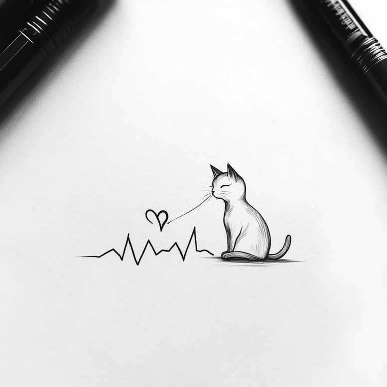 This AI-generated tattoo project presents a minimalist fine-line design that pairs a seated cat with a delicate heart and a jagged heartbeat line. Rendered in black ink on white skin, the composition relies on clean, uninterrupted lines and restrained shading to express tenderness, devotion, and the idea that life is measured by the beat of a loved one. The cat is rendered as an elegant silhouette with subtle contouring, while the heartbeat line frames the animal and culminates in a small heart that hovers above—a symbolic celebration of affection. This tattoo design embraces the current appeal of fine-line tattoos—delicate, precise, and suited for discreet placements such as the inner wrist, behind the ear, or the ankle. The pattern-like rhythm of the heartbeat motif gives the piece a visual pulse, reinforcing its meaning as a memorial or tribute within a compact tattoo. The black and grey palette ensures versatility and aging gracefully, preserving high contrast over time. While the concept is modest, it carries meaningful potential: it can honor a pet, celebrate a relationship, or symbolize the heartbeat that underpins memory. The design scales well from a small forearm piece to a larger shoulder canvas without losing legibility. For tattoo lovers seeking meaningful tattoos, this design demonstrates how personal symbolism can fuse with a universally appealing image in a custom tattoo design. This is an AI-generated tattoo project, illustrating how a simple cat motif linked to a heartbeat can translate into a timeless piece of body art. Keywords used here include tattoo, tattoo design, meaningful tattoos, fine line tattoo, lotus flower tattoo, infinity tattoo, tribal tattoo, rose tattoo design, small tattoos, flower tattoos, custom tattoo design, Japanese style tattoo, black and grey, realistic tattoo, body art, ink.