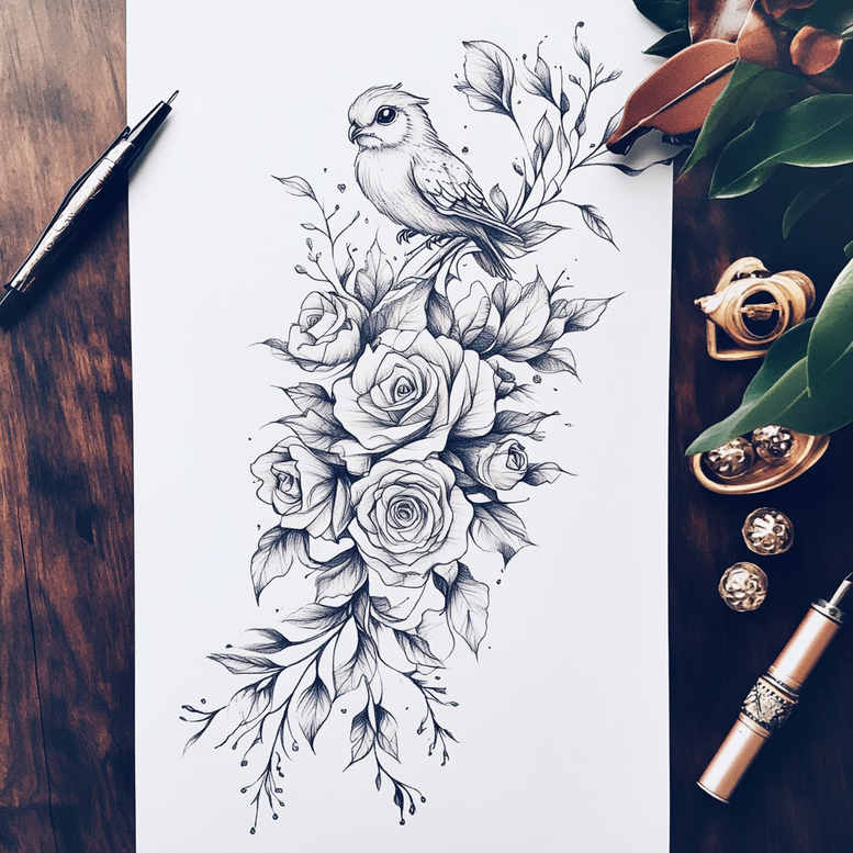 Sharp delicate flowers tattoo design ideas