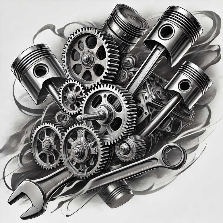 biomechanics tattoo design ideas decorative detail technical shading for lower leg