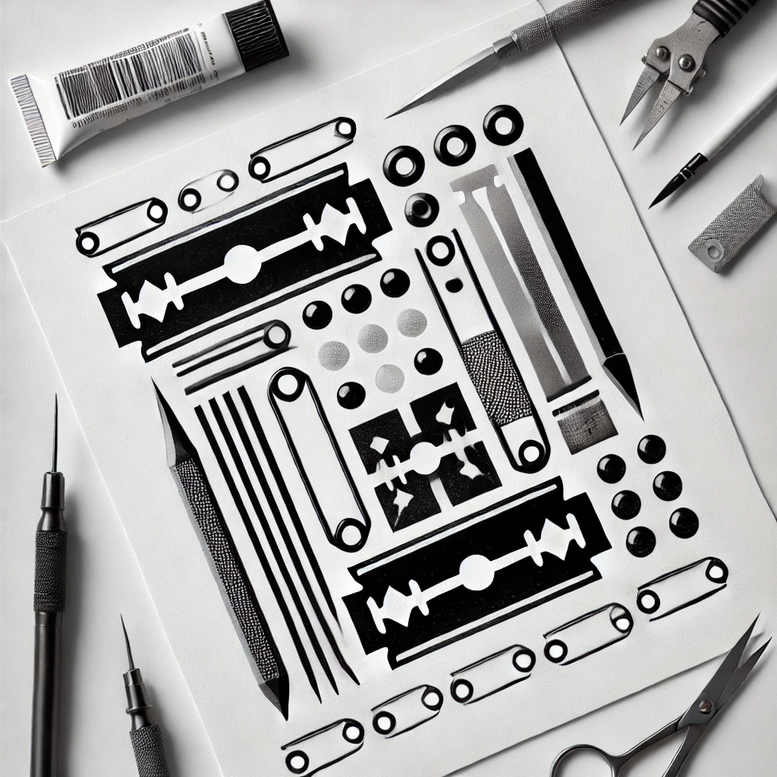 Presented as a studio study, this AI-generated tattoo project showcases a dense linework pattern sheet conceived as a versatile stencil set for tattoo design exploration. The composition centers on bold black shapes and negative space, including circles, bars, stars, dots, and geometric motifs arranged in a rhythmic grid that could flex from small tattoos to larger panels. The sheet is presented alongside practical tattooing tools: a blade, a tube of ink, a pen, a ruler, tape, and a plier, underscoring its status as a design exercise rather than a finished piece. The concept embraces a graphic, almost Japanese-style linework sensibility with crisp edges, while remaining adaptable for black and grey ink, or for a bold full-contrast tattoo design. The patterns evoke order and motion, enabling a modern tribal or geometric tattoo aesthetic, and accommodating flower or abstract motifs depending on placement. In this study, emphasis is on clean fine line execution, precise geometry, and scalable motifs that translate into a safe cover-up when needed. The dense black blocks and careful negative space create depth and texture, making the pattern suitable for concealing prior ink while preserving visual interest. While the design is not a portrait, it carries meaning through symmetry, repetition, and abstract symbolism—stacks of circles suggesting continuity, lines as pathways, and star motifs as guidance. If the image appears particularly dark, the project is presented as ideal for a cover-up, with the pattern as a central feature of the design. This is an AI-generated tattoo project intended for professional use and exploration in body art.