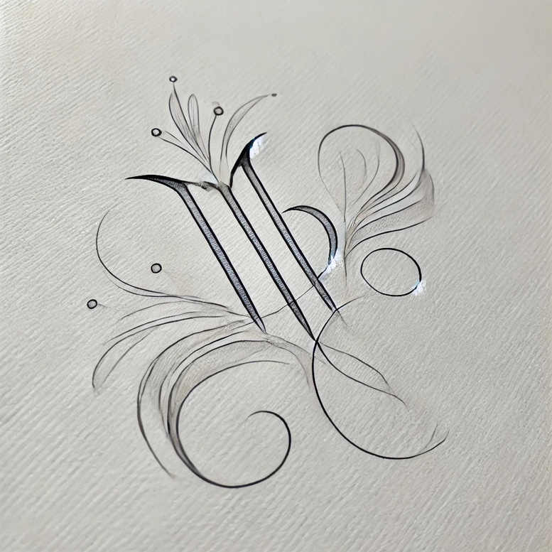 An abstract, ornamental tattoo concept built from three parallel lines punctuated by curling flourishes, this design pairs precise black linework with sweeping curves that loop and converge. The central trio of bars anchors the piece, while the surrounding strokes create a dynamic rhythm reminiscent of calligraphy and floral motifs. Executed in black ink with fine-line technique, the piece relies on clean, consistent line weight to preserve clarity at small sizes and to maintain readability on skin over time. The flourishes weave around the lines like delicate vines, forming arcs and spirals that can extend along the forearm, wrist, or ankle; the tiny dots act as focal accents that catch light and add a touch of whimsy without overwhelming the composition. Because of its balance between structure and movement, this tattoo design reads as both a graphic pattern and a personal symbol, making it suitable for a subtle, discreet placement or as a starting point for a larger, more elaborate piece. The concept embraces modern minimalism while nodding to traditional linework, Japanese-inspired asymmetry, and ornamental tattoo design, creating a versatile template for custom tattoo design that can be adapted by artists to suit different skin tones and body contours. As a black-and-grey study, the piece maintains contrast and legibility, delivering a timeless look that pairs well with other small tattoos or can be integrated into a sleeve through careful alignment of curves and negative space. Its meaning can be interpreted as balance, continuity, and personal growth, with the three lines suggesting past, present, and future or a sequence of important milestones, while the surrounding curls celebrate motion and growth. When treated as an AI-generated tattoo project, it serves as a practical starting point for client discussions about line weight, spacing, symbolism, and how a simple motif can be expanded into a larger narrative across the body, including potential cover-up options by leveraging negative space and overlapping shapes to mask older ink while preserving a fresh, sophisticated aesthetic. This adaptable concept invites further refinement for those seeking meaningful tattoos that fit compact spaces.