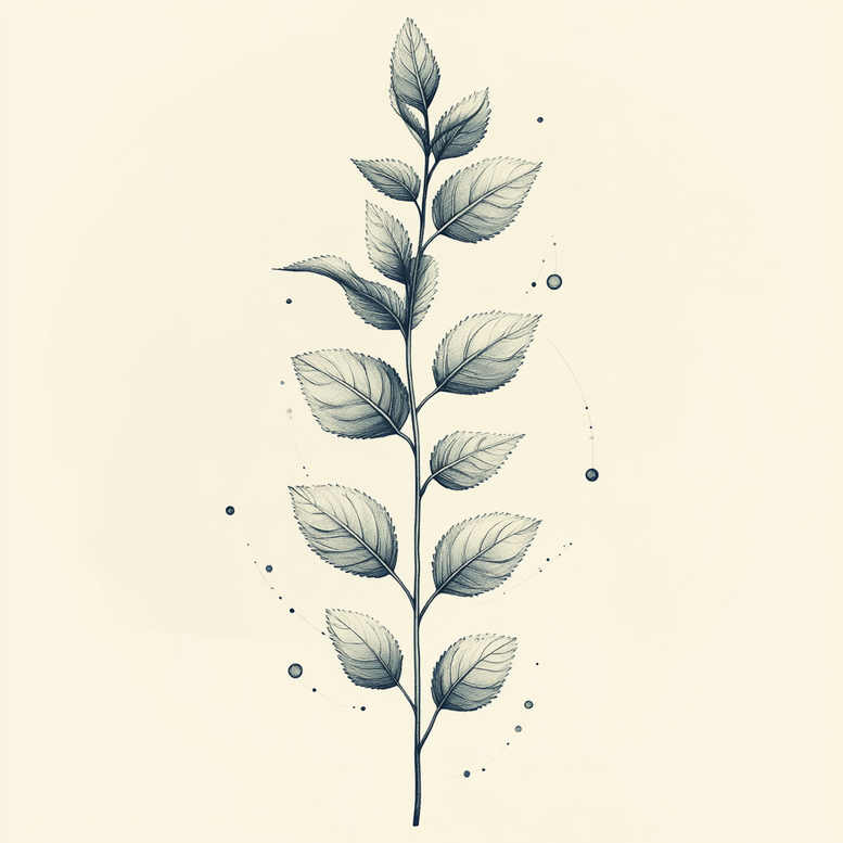 AI-generated tattoo project concept featuring a tall botanical stem with a sequential array of leaves, drawn in a refined fine-line black and grey style. The central backbone runs vertically with evenly spaced leaves that taper toward the tip, each leaf showing meticulous venation, subtle serration, and a gentle gradient from crisp outline to soft shading that suggests depth without losing legibility on the skin. The composition relies on razor-thin contours, controlled cross-hatching in the midtones, and sparing dot work around the stem to create a sense of micro-architecture and movement. The stark monochrome palette emphasizes the form and negative space, making it a versatile tattoo design suitable for chic placements along the forearm, collarbone, or behind the ear, while maintaining elegance when scaled down for small tattoos. The repeated leaf motif conveys growth, renewal, and resilience, offering meaningful tattoos for someone pursuing a personal narrative of transformation. The design nods to Japanese style tattoo aesthetics through its clean line work, measured spacing, and natural subject matter, while remaining firmly within black and grey real-world ink conventions. For customization, the stem length, leaf count, and spacing can be adjusted to fit a client’s anatomy; additional elements such as a lotus flower tattoo motif at the tip, or an infinity tattoo companion along the stem, can be woven in for deeper symbolism. The concept also supports a larger sleeve or back piece by integrating companion botanical elements, or crossing lines with tribal tattoo-inspired accents if desired. As an AI-generated tattoo project, this concept demonstrates how digital drafting can inform traditional ink, delivering a timeless, refined tattoo that preserves legibility, elegance, and personal meaning across scales. It uses standard ink applications, file-ready line weights, and careful grayscale shading to ensure a professional, print-ready tattoo design.