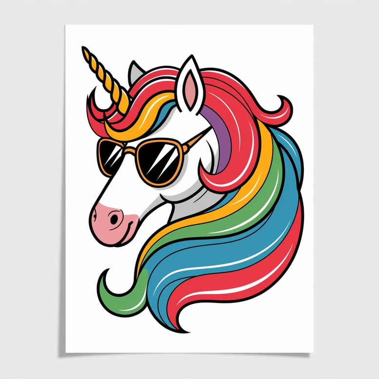 This piece belongs to a tattoo gallery focused on minimalist tattoo designs, and this AI-generated concept showcases a unicorn head rendered in clean lines and vibrant blocks of color. The composition centers on a stylized unicorn three-quarter profile: a curving rainbow mane sweeping across the head, a single pointed horn, and a pair of glossy sunglasses that infuse the image with contemporary attitude. The line work remains crisp and economical, maintaining strong silhouette recognition while allowing generous color fill that reads well on skin. The arrangement favors negative space around the jaw and neck to preserve clarity in small-scale applications, making it a versatile option for a tattoo design that scales gracefully from wrist to shoulder. Symbolically, the unicorn embodies magic, purity, and personal myth, while the rainbow mane signals diversity, joy, and transformative energy; the sunglasses introduce a playful, rebellious twist that reframes the creature as a modern emblem of individuality. For clients seeking meaningful tattoos, this concept blends traditional symbolism with contemporary pop art flavor, enabling a narrative of confident self-expression through a single, memorable motif. In terms of style, the piece straddles minimalist and cartoon aesthetics, with bold color blocks, smooth gradients, and deliberate shading that suggests depth without overcomplication. The result is a timeless, versatile tattoo design that resonates with fans of small tattoos and body art alike, offering easy ink applications for visible areas while remaining striking when scaled. This design embraces the visual language of color theory, using warm and cool hues to create balance, and it stands as a testament to how a simple silhouette can convey layered meanings. As part of a broader exploration of modern mythic icons, it invites personal interpretation and can be realized in both black and gray or vivid color versions, depending on the wearer’s preferences. While present as an AI-generated concept, the underlying symbolism remains universal: a playful yet profound reminder that imagination travels with us on every line of ink, and that a well executed unicorn tattoo design can capture individuality, optimism, and fantasy in one compact body of art.