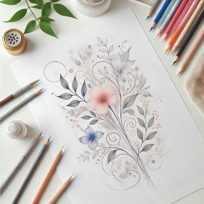 These are AI-generated tattoo project concepts. The piece presents a watercolor floral motif designed for ink on skin, centered around a delicate branch that bears two blossoms—one soft pink, the other cool blue—while slender gray leaves provide a tonal counterpoint. Fine-line outlines define the petals and stems, and subtle washes of color create a painterly atmosphere that remains legible as a tattoo design when scaled for small tattos or integrated into a larger floral sleeve. The curling tendrils and looping swirls introduce rhythm and movement, making the composition adaptable to various placements, from wrist and ankle to shoulder blades. The technical approach emphasizes precision linework, light shading, and color layering to achieve a balance between realism and stylized illustration, offering a flexible path to either a full-color piece or a restrained black-and-grey translation. Symbolically, blossoms evoke renewal and growth, while the intertwining stems symbolize connection and flow—themes that resonate in meaningful tattoos and custom tattoo design projects. For tattoo enthusiasts, this concept aligns with trends in fine-line tattoo and flower tattoo design, and it can be translated into diverse scales, from tiny dot-work accents to expansive botanical scenes. As an AI-generated tattoo project concept, it demonstrates how digital illustration can inform ink-ready designs, preserving an artful watercolor feel in a durable skin tattoo. Keywords to consider include tattoo, tattoo design, meaningful tattoos, fine line tattoo, lotus flower tattoo, infinity tattoo, tribal tattoo, rose tattoo design, small tattoos, flower tattoos, custom tattoo design, Japanese style tattoo, black and grey, realistic tattoo, body art, ink.