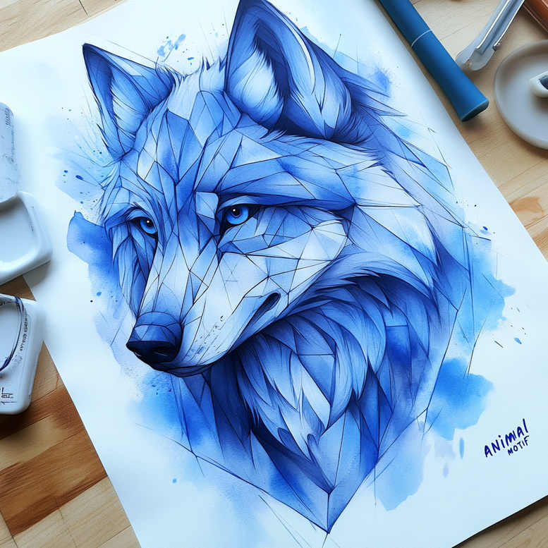This is an AI-generated tattoo project concept featuring a blue geometric wolf portrait rendered with polygonal facets and watercolor washes. The piece presents a stylized wolf head in varying cobalt and cerulean tones to create depth and a sense of motion. The geometric approach blends sharp angular shapes with painterly transitions, giving a graphic yet expressive look that translates well to skin as a tattoo design. The technique fuses line-driven geometry with soft shading to suggest fur texture and volume while preserving clean readability at different sizes. The concept invites placement on forearm, calf, or shoulder, with the cool blue palette delivering a bold visual impact even in smaller tattoos. Symbolism centers on loyalty, guardianship, and wild instinct, making this a meaningful tattoo design for nature lovers and those drawn to strength and resilience. While rooted in modern graphic aesthetics, the piece can be adapted to traditional or Japanese-style elements through line thickness and spacing, and can be executed in black and grey or color as desired. The polygonal geometry creates a pattern-like texture that enhances visual rhythm and sets up strong negative space for ink. This narrative embraces both AI-generated origin and the practical demands of tattoo art—adjustable line density, shading decisions, and scalable composition for custom tattoo design. For clients considering cover-ups, the dense geometry can be leveraged to conceal existing work while maintaining a cohesive blue motif. Keywords woven through the prose include tattoo, tattoo design, meaningful tattoos, fine line tattoo, lotus flower tattoo, infinity tattoo, tribal tattoo, rose tattoo design, small tattoos, flower tattoos, custom tattoo design, Japanese style tattoo, black and grey, realistic tattoo, body art, ink.