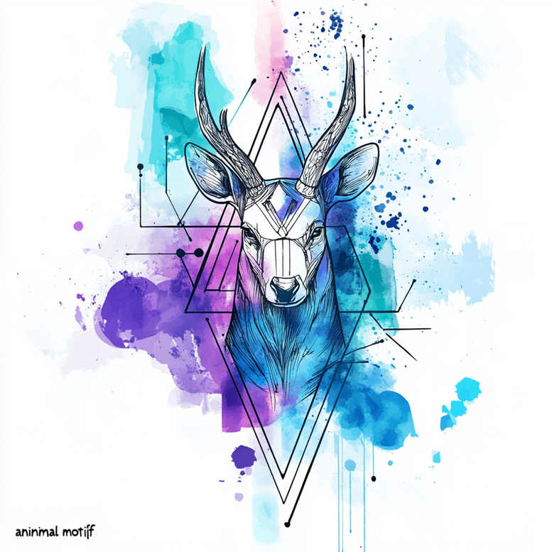 This concept centers on a geometric deer head rendered with precise line work and interlocking triangles, set against a vibrant watercolor backdrop in shades of blue, turquoise, and violet. Executed in a fine line style with clean black ink, the composition fuses architectural geometry with organic color washes to produce a contemporary tattoo design that reads both precise and expressive. The deer motif embodies resilience and gentleness, while the surrounding triangles introduce balance, direction, and motion around the focal figure. The watercolor splashes extend beyond the line work, injecting energy and spontaneity that contrast with the regimented geometry, a hallmark of modern tattoo art that adds depth without sacrificing clarity. The piece emphasizes minimal shading, relying on crisp outlines and thoughtful ink density to maintain legibility over time, making it a strong candidate for a cover-up where old tattoos require careful coverage and seamless transitions between tones. As an AI-generated tattoo project concept, it demonstrates how algorithmic design can yield cohesive motifs that merge natural forms with abstract geometry, offering versatility for those seeking meaningful tattoos that perform well in black and grey or as full-color ink. Symbolically, the deer suggests grace and endurance, the triangles convey structure and harmony, and the watercolor background evokes growth and fluidity. This design fits within the spectrum of modern tattoo design, combining fine line precision with painterly color, and is adaptable to placements from forearm to back. It embraces keywords important to tattoo discourse—tattoo, tattoo design, meaningful tattoos, fine line tattoo, black and grey, ink, and custom tattoo design—while presenting a fresh, geometric aesthetic for body art.