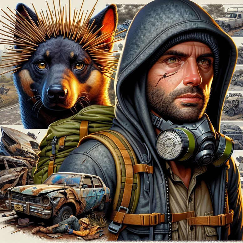 This AI-generated tattoo project presents a cinematic, hyper-realistic concept ideal for a full-color tattoo design. The scene centers on a rugged man in a hooded jacket, a respirator resting at his neck, and a loyal German shepherd close by. In the foreground lies a battered vintage car, its chrome dulled and paint chipped, while a collage of damaged vehicles forms a dense backdrop that suggests a post-apocalyptic setting. The artwork emphasizes meticulous lighting, rich textures, and precise linework to convey leather, metal, fur, and fabric with convincing depth. Symbolically, the man and dog symbolize companionship and resilience amid chaos, while the gas mask hints at danger, preparedness, and the costs of conflict. The composition uses strong contrast and a controlled color palette to keep the figure legible for a tattoo, whether executed in vibrant full color or restrained black-and-grey. As a tattoo concept, it offers clear contours and defined negative space to support crisp outlines, fine line details, and smooth color transitions, making it suitable for large or medium-sized tattoos on the arm or back. This concept aligns with meaningful tattoos and realistic tattoo aesthetics, and can be adapted to a Japanese style tattoo or other influences if requested. The project demonstrates how AI-generated artwork can inform a custom tattoo design, blending narrative elements with body art to produce a striking, modern piece that remains practical for skin art. The piece explores loyalty, danger, and endurance, with the dog as a beacon of fidelity and the wrecked car backdrop suggesting a journey through hardship. The hyper-realistic approach showcases textured leather, fur, metal, and fabric, providing a strong foundation for both fine line tattoo techniques and broader shading in full color or black and grey. As an AI-generated tattoo project, it offers a flexible concept that can be tailored to client preferences while preserving core symbolism and composition for a compelling tattoo design.