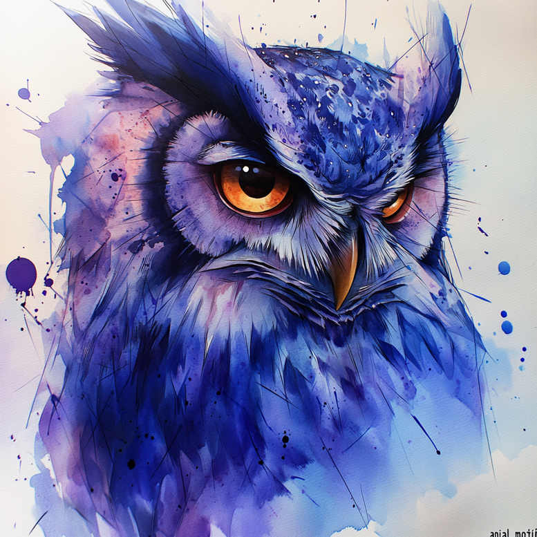 This AI-generated tattoo project presents a bold owl portrait rendered in a luminous watercolor palette of blues and purples, with a piercing orange gaze and a patterned splatter backdrop. The artwork reads as a concept piece rather than a finished flash, inviting the wearer to explore a dynamic balance between fluid washes and sharp details. The technique favors layered washes and edge definition: soft gradients along the neck and chest give a sense of feather volume, while crisp linework around the eyes and beak anchors the composition. The composition emphasizes the owl’s expression of watchful wisdom, a symbol often chosen for personal meanings such as protection, intuition, and insight. The color choice—cobalt blues, ultramarine purples, and orange eyes—creates high contrast that pops on skin, yet remains harmonious when rendered as a tattoo. The piece works well as a standalone statement or integrated into a larger sleeve as a focal point. Given its bold color and impressionistic style, it suits a creator seeking a large scale, showpiece tattoo with a contemporary illustration vibe. From a technical standpoint, the artist would translate the watercolor feeling into skin with careful gradient shading, stippling for texture, and selective black ink for definition. This concept embraces modern tattoo design trends, including fine line accents within broad color blocks and soft shading that preserves the airiness of watercolor. It is intended as a meaningful tattoo design, adaptable for various placements such as shoulder, back, or chest. Note: AI-generated tattoo project intended to inspire custom tattoo design workflows and show how color-led wildlife imagery can become a striking piece of body art. The pattern-laden splatters and feather textures reinforce the pattern theme while maintaining readability as a tattoo. Keywords such as tattoo, tattoo design, meaningful tattoos, custom tattoo design, ink, and body art are threaded throughout to support discovery by those seeking a vivid, non-traditional approach to ink.