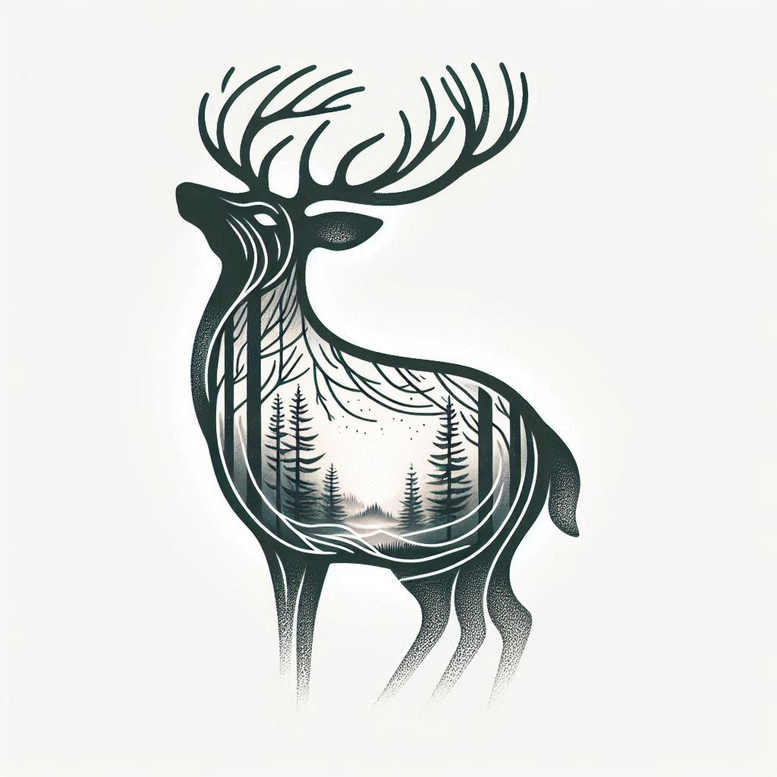 This AI-generated tattoo project presents a bold deer silhouette created with flowing linework and a graphic pattern that unfolds into a forest scene within the animal’s form. The design uses a black and grey palette with layered shading to give the stag a strong outer contour while the interior reveals slender trees, distant horizon, and a soft mist that hints at depth. The linework varies in thickness to separate the outer geometry from the interior landscape, while stippling and smooth gradients add texture and dimensionality. The symbolism pairs the deer’s grace and agility with a quiet woodland sanctuary, suggesting resilience, renewal, and guidance through dark times. The forest interior acts as a metaphor for inner growth, a personal journey mapped onto the body with a continuous, unbroken silhouette. Technically, the composition favors large, flat surfaces on the shoulder blade or upper arm, but can be scaled for forearms or calves; it works as a black and grey tattoo with crisp edges or adapted into a refined fine line tattoo for a subtler look. As a cover-up concept, the bold exterior plus the interior pattern provide both concealment and impact, masking underlying marks while preserving legibility of the forest details. For keywords and discoverability, this tattoo design aligns with terms like tattoo, tattoo design, meaningful tattoos, fine line tattoo, forest tattoo, deer tattoo, black and grey, and custom tattoo design; it also nods to broader styles such as Japanese or Nordic-inspired linework while staying accessible to clients seeking a timeless, nature-inspired body art piece. The image remains distinctly AI-generated, reminding viewers of its digital origin while delivering a timeless, hand-crafted feel that can be customized in scale, density of trees, and horizon glow to tailor meaning for each wearer.