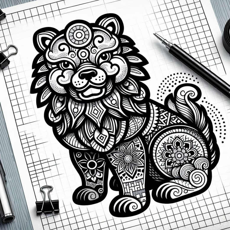 This piece presents an intricate dog tattoo design rendered in black and grey line work, merging ornamental patterns with stylized floral and geometric elements. The subject is a stout companion, its head framed by concentric curls and a mandala-like motif on the forehead, while the body and limbs are adorned with lace-like swirls, diamonds, petals, and stippled shading. The overall effect is a powerful mix of fine line tattoo aesthetics and bold silhouette, suitable as a standalone tattoo design or as inspiration for a larger body art piece. The approach relies on precise line weight, dot shading, and negative space to carve depth without filling the skin with solid blocks, a hallmark of black and grey realism in tattoo art. Each motif is chosen for its symbolic resonance—loyalty and protection for the dog, combined with floral and geometric motifs that hint at cycles of life and balance. The motifs can be read as a tribute to companion animals or as a personal emblem of guidance and guardianship. The on-page layout emphasizes symmetry and flow, inviting placement on the upper arm, chest, back, or calf, with the ornate pattern continuing along the limbs to create a cohesive sleeve or half-sleeve. From a technique perspective, the piece showcases crisp black lines, fine line detail, stippling for shading, and careful contouring to preserve readability at small sizes, making it an ideal choice for small tattoos or a larger Japanese-style fusion design. The design references classic tattoo traditions while staying distinctly modern, adaptable to full-color elements if desired but equally striking in black and grey. When translated to skin, the interwoven patterns can symbolize infinity, devotion, and strength, and the piece invites a personal narrative—viewers may interpret the floral mandala as a lotus symbol of spiritual growth or simply appreciate the rhythm of the patterns. For artists and studios, this AI-generated tattoo project demonstrates how ornamental line work can be scaled, customized, and aligned with clients’ body contours, offering a rich template for a custom tattoo design, whether the client seeks a delicate small tattoo or a statement piece in a traditional Japanese-inspired or tribal fusion style. It also serves as a benchmark for tattooists to study pattern repetition, geometric tessellation, and the interplay between negative space and ink, reinforcing the craft’s technical and narrative potential.