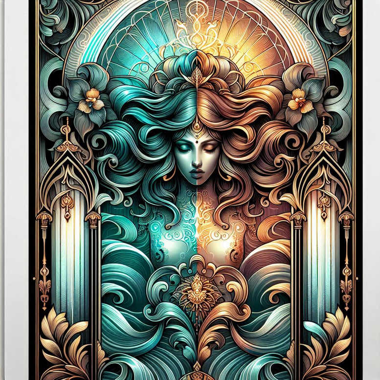 This is a tattoo gallery inspired by Aphrodite from Greek mythology. The description below presents a color tattoo inspired by the goddess of love and beauty, reinterpreted in a bold neo-traditional style. At the core sits a portrait of Aphrodite, her face serene and confident, framed by teal and gold locks that cascade into waves and tendrils. Surrounding her are ornate arches and filigree that echo temple architecture, punctuated with floral motifs and shell-like accents that allude to her sea-born origins. The composition uses strong black outlines with saturated teal and warm gold to create clear readability, while shading and gradient work add depth and a sense of movement, characteristic of a realistic yet stylized tattoo design. The symbolism is layered: Aphrodite represents love, beauty, and transformative power; teal evokes the sea, calm, and emotional balance; gold conveys divinity, radiance, and precious worth. The repeating ornamental patterns along the frame foster rhythm and unity, making the design suitable for a larger canvas or sleeve, and reinforcing the idea of cyclical renewal. As a meaningful tattoo, it invites personal interpretation—from celebration of feminine beauty to devotion to maritime myth—while serving as a visually striking piece of body art that can age gracefully with time. If referenced as a concept, this concept leans into AI-generated exploration of mythic symbolism, and the finished tattoo would inevitably become a distinctive personal statement. This design speaks to the enduring power of myth and the princess-like aura of Aphrodite, weaving myth, color, and line into a cohesive tattoo design, ideal for collectors seeking a statement piece. The included repeating patterns and strong color blocks are deliberate choices for a bold, timeless tattoo that honors classical myth with contemporary technique, and the gallery acknowledges the influence of ancient art in modern ink. This is a tattoo gallery inspired by Aphrodite from Greek mythology.