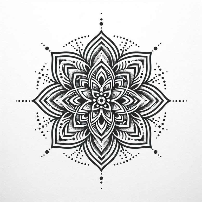 This piece presents a striking mandala flower motif rendered in black and grey ink, designed as a versatile tattoo design capable of adapting to larger canvases or refined, smaller placements. The composition centers on a symmetrically arranged flower formed by multiple layers of pointed petals, each outlined with clean, confident lines and punctuated by delicate dot shading that builds depth without overpowering the negative space. The surrounding ring of dotted arcs and outer petal lobes creates a hypnotic, almost meditative pattern that draws the eye inward, a hallmark of geometric and mandala-inspired tattoo art. Technique-wise, the work relies on fine line tattoo precision, crisp black ink, and measured density to achieve a balance between detail and legibility over time; the shading is achieved with stippling and light feathering to preserve the design’s clarity as the skin ages. The symbolism of a mandala and lotus-like flower speaks to balance, harmony, and spiritual growth, while the radial symmetry echoes cycles of life and continuity—an appealing choice for meaningful tattoos or personalized body art with a spiritual or decorative angle. This description also notes that the project is AI-generated tattoo project, highlighting the creative potential of digital-to-ink workflows. As a tattoo design, it suits both bold statement pieces on the back, chest, or thigh and elegant smaller placements where fine line details can be appreciated up close; the black and grey palette ensures timeless contrast and compatibility with various skin tones, while keeping the look sophisticated and wearable as part of a larger sleeve or a standalone, intricate motif. For search optimization, keywords such as tattoo, tattoo design, meaningful tattoos, fine line tattoo, lotus flower tattoo, infinity tattoo, tribal tattoo, rose tattoo design, small tattoos, flower tattoos, custom tattoo design, Japanese style tattoo, black and grey, realistic tattoo, body art, and ink are woven into the narrative and imagery context to enhance discoverability for designers, clients, and enthusiasts.