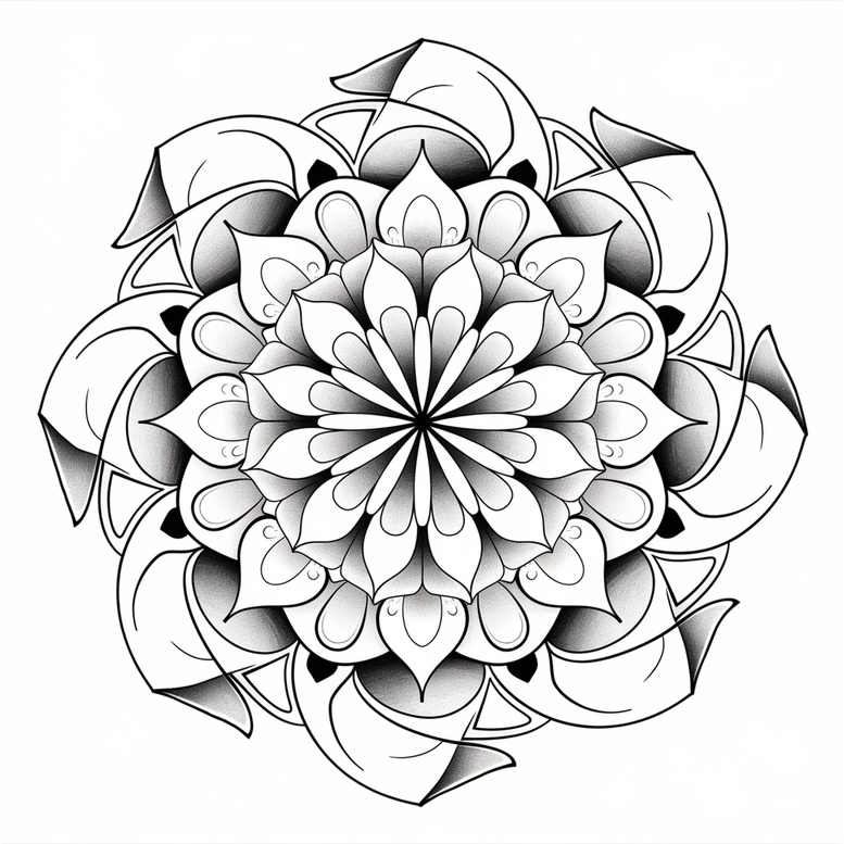 AI-generated tattoo project presents an intricate mandala flower design, rendered in clean black and grey line work. The piece unfolds in concentric rings of petals, each layer tapering into a precise central point to create a hypnotic, globe-like rhythm. The outer rings feature curvilinear shapes that interlock in a circular tessellation, while shaded gradients give depth to each petal, enhancing the sense of volume and movement. The symmetry is deliberately perfect, reflecting sacred geometry often found in mandala art and traditional flower motifs. This makes the design suitable as a stand-alone statement piece or as a versatile base for additional elements in a larger tattoo sleeve. The fine line technique creates a delicate, refined appearance, ideal for those seeking meaningful tattoos that convey balance, harmony, and inner focus. The pattern-rich composition relies on repeating teardrop and petal shapes to invite careful placement on the body, such as the forearm, back, or chest. Artists and clients alike may appreciate its potential as a custom tattoo design that can be scaled up or down, with grayscale shading allowing for gradual ink density. This project demonstrates how AI can contribute to tattoo-inspired concepts, offering a polished template for professional artists to interpret and adapt in real life. In the broader context of tattoo design, mandala motifs endure as timeless symbols of unity and spirituality, while the black and grey palette emphasizes form and contrast without relying on color. The piece aligns with trends in fine line tattoos and small tattoos, yet its complexity makes it suitable for larger formats as well. The pattern-rich nature also lends itself to other body art ideas, such as lotus flower tattoo-inspired arrangements or additional geometric elements, while maintaining a cohesive black and grey aesthetic.