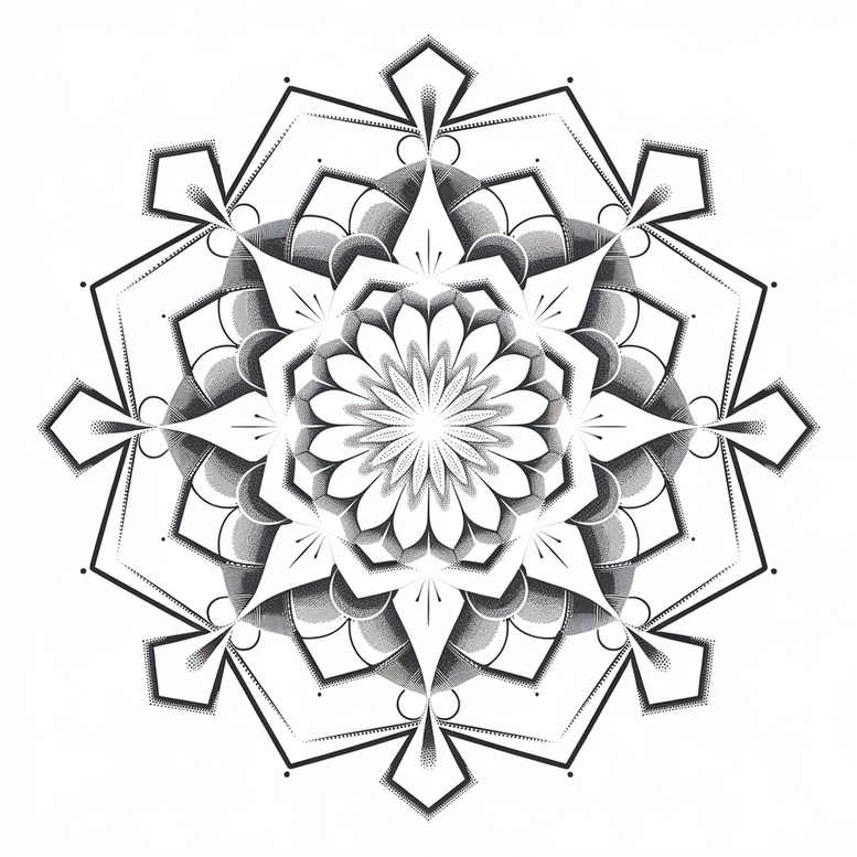 An AI-generated tattoo project exploring a dense mandala motif rendered in precise fine-line technique. The central flower blossoms into multiple radial petals, each layer shaded with stippling to create depth while preserving clean line work. Concentric polygons frame the core, alternating between star-like points and curved arcs, producing a hypnotic pattern that reads as a unified geometric design. Outer rings introduce additional angular elements and small dots that anchor the composition, giving a sense of balance and rhythm. The black-and-grey palette keeps the piece timeless and ensures strong contrast on skin, while scale adapts easily from small forearm tattoos to larger back pieces. This design exemplifies how a mandala can serve as a meaningful tattoo design with personal symbolism—cycles, growth, and focus—without relying on heavy shading. As a dedicated pattern-driven concept, it adheres to contemporary trends in fine line tattoo and black and grey realism, offering a versatile option for body art that stays legible at small sizes and remains impactful when enlarged. Being AI-generated, it demonstrates algorithmic creativity in custom tattoo design and provides a solid foundation for future personalization, such as adding lotus or infinity motifs if desired. For cover-up considerations, the dense line work and high-contrast geometry favor concealment of darker ink beneath, while preserving intricate detail; this makes it a strong candidate for a cover-up project where existing tattoos need rework or enhancement. In sum, this mandala concept blends symmetry, motif repetition, and meticulous shading into a compelling tattoo design suitable for those seeking a meaningful, modern geometric body art piece, with pattern as its core attribute and the AI origin adding a contemporary edge to the creative process. The composition lends itself to variations in style, from Japanese-inspired line work to more traditional black-and-grey realism, and can be adapted into lotus flower tattoos or small tattoo accents for wrists, ankles, or behind-the-ear placements, aligning with trends in small tattoos and flower tattoos while maintaining a universal appeal.