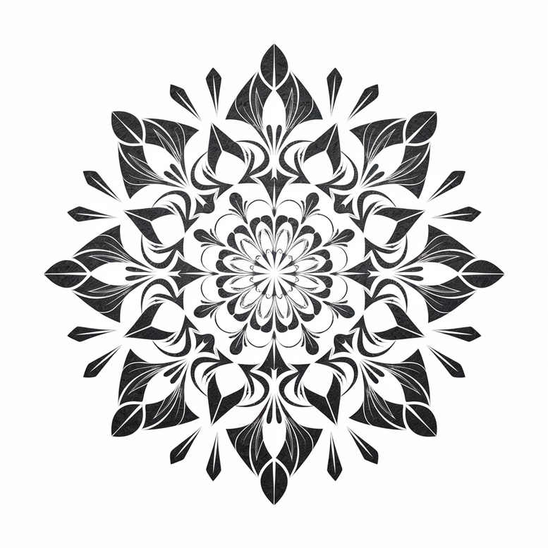 AI-generated tattoo project concept presenting a blackwork mandala pattern with a dense central bloom and radiating petals. The design features a symmetrical arrangement of concentric floral motifs, each petal and leaf carved with crisp negative space and solid black fills to create a striking contrast on the skin. Central elements anchor the composition, while surrounding layers echo lotus-like forms and geometric accents, blending organic and architectural lines. Executed in black and grey ink, the piece relies on bold shapes, clean linework, and subtle shading to achieve depth without color. The motif reads as a timeless tattoo design suitable for large areas such as the back or chest, yet adaptable to smaller placements by scaling the pattern. The symbolism of the mandala evokes balance, wholeness, and spiritual focus, while the lotus-inspired petals nod to renewal and enlightenment. As a meaningful tattoos concept, it can be paired with additional elements like infinity or koi motifs for a personalized narrative within a Japanese style tattoo framework. For those seeking a cover-up, the dense black forms and structured geometry provide efficient masking of existing ink with a cohesive black silhouette. This piece aligns with modern blackwork and floral tattoo trends while remaining flexible as a custom tattoo design. It demonstrates precise negative-space work, bold saturation, and a harmonious balance between symmetry and detail, qualities valued by tattooers and clients alike in the realm of body art and ink. Overall, the design embodies a refined blend of fine line precision and solid black silhouettes, offering versatility for tattoo enthusiasts seeking small to large patterns.