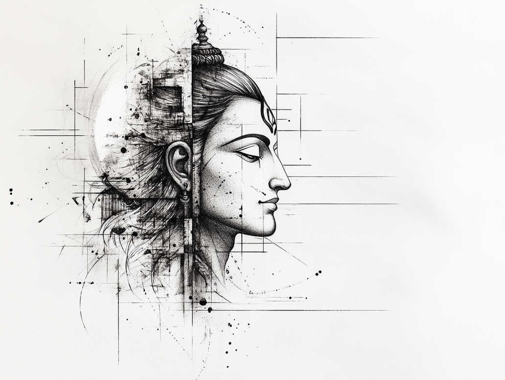 An exquisite example of fine line tattoo artistry, this Guanyin-inspired profile merges traditional symbolism with contemporary geometry. The central composition presents the serene silhouette of a woman in profile, rendered in precise, hairline strokes that suggest calm breathing and inner stillness. A delicate halo or nimbus circles behind the head, anchoring the figure in sacred space, while a lattice of straight lines and geometric shards extends outward, evoking both architectural blueprint and meditative focus. The contrast between soft contouring of the face and the hard-edged geometry creates a tension that is signature of modern black and grey ink work. The choice of black and grey ink, without color, emphasizes shading variations through cross-hatching, stippling, and subtle gradient washes that yield a luminous, almost ethereal texture. The design’s symbolism is potent: Guanyin stands as a bodhisattva of compassion and mercy, a beacon of protection and solace for those who seek relief from suffering. The profile captures a moment of quiet compassion, suggesting an inner vow to aid others, while the halo alludes to enlightenment and spiritual awakening. The geometric overlay is a visual metaphor for the balance between form and impermanence, the intersection of human experience and cosmic order. For the wearer, the tattoo becomes a meaningful talisman of resilience, humility, and benevolence. The piece also reads as a study in lineweight discipline and negative space, inviting contemplation as the viewer follows the flow of lines from the forehead to the tail of the hair, then into the circular aura. This concept, described in professional tattoo design language, would translate well into a sleeve or chest composition, depending on scale. It embraces fine line technique, black and grey shading, and a restrained palette that makes it suitable for a discreet, elegant body art statement. The composition relies on rhythm and breathing room, making it accessible to smaller placements while preserving legibility over time. The artwork hints at a larger series of spiritual portraits, each exploring a different facet of compassion through minimalism and geometry. Overall, the piece conveys a timeless message of mercy and serenity; it is an AI-generated concept that mirrors current trends in meaning-driven ink and meaningful tattoos, inviting wearers to carry a reminder of Guanyin’s benevolence wherever they go, while celebrating the enduring craft of ink and linework.