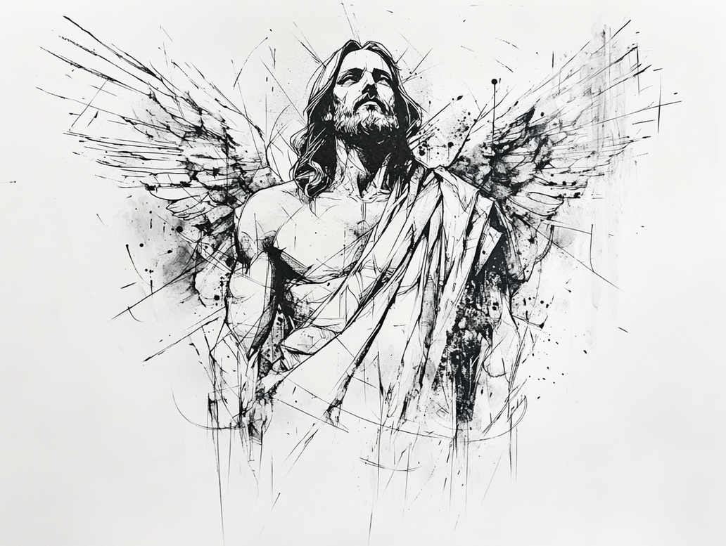 AI-generated tattoo project presents a contemplative black and grey line portrait of a sacred figure in a robe, arms extended in welcome. The concept relies on refined fine lines to build form, letting negative space create breathing room and a subtle aura around the body. Drapery folds cascade with simple, directional strokes that guide the eye toward gesture and grace, while a radiating network of lines suggests a halo without overt symbolism. The result is a versatile tattoo design that can be placed on chest, back, or arm, and translated across scales from small wrist pieces to larger panels. The minimal shading keeps the piece elegant on light or darker skin tones, ideal for a timeless approach to meaningful tattoos and custom tattoo design. The motif embodies mercy, protection, and solace: an invitation to receive blessing and stand in reverence before the divine. For ink enthusiasts, this concept readily adapts to Japanese-inspired restraint or modern black and grey aesthetics, and it can be extended with floral or geometric accents such as a lotus flower tattoo or infinity tattoo motif to convey renewal or eternity. As an AI-generated tattoo project, the artwork demonstrates how disciplined linework can express deep symbolism without heavy shading, making it suitable for a refined, fine line tattoo that remains legible over time. It aligns with the broader language of body art and ink, offering a meaningful tattoo design that fits into both traditional and contemporary tattoo collections.