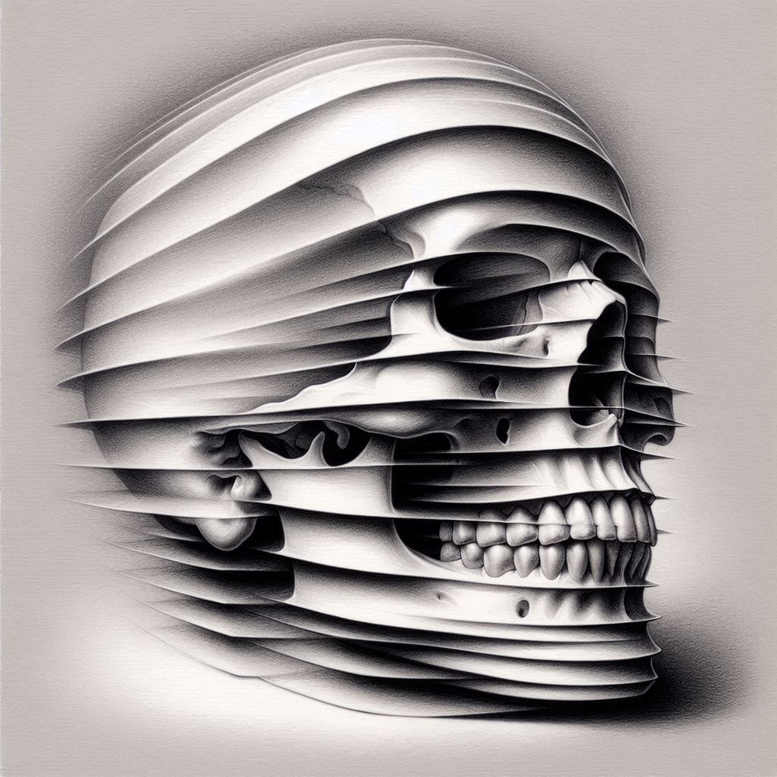This skull design is rendered as layered, curved bands that wrap around the head, creating depth and a striking graphic rhythm. The central element is a skull, shown in profile, but the bone is reimagined as a sequence of horizontal slices whose edges stay crisp while the shading bleeds softly between bands. The result feels both realistic in form and pattern-driven in texture, making it suitable as a standalone tattoo design or as part of a larger piece. The technique relies on clean, fine line tattoo shading and smooth transitions in black and grey ink, preserving legibility on skin while allowing the motif to scale from a small forearm piece to a back piece. Symbolically, skull imagery speaks to mortality, memory, and resilience; merging it with a sliced, architectural pattern emphasizes structure, time, and layered experience. The grayscale palette keeps the design versatile across skin tones and ages well with care. As a concept, it aligns with trends in fine line tattoo and geometric pattern work, while remaining faithful to traditional tattoo design principles. This AI-generated tattoo project concept demonstrates how digital inspiration can translate into a custom tattoo design that feels contemporary yet timeless, with potential for meaningful tattoos, a lotus flower tattoo, or rose tattoo design elements, or simply strong body art ink. For those considering a cover-up, the high-contrast silhouette and intricate internal rhythm can be adapted to conceal older work while delivering a bold focal point on the arm or calf; the piece also pairs well with Japanese style tattoo sensibilities or classic black and grey realism for a cohesive sleeve.