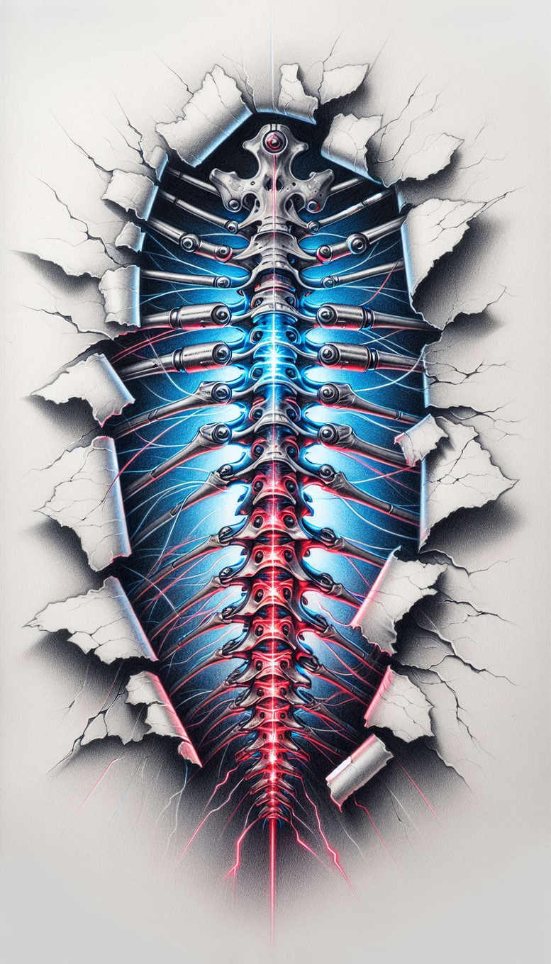 AI-generated tattoo project presents a neon biomechanical spine pattern rendered in stark black and grey with electric blue and magenta highlights. The central axis resembles a row of articulated vertebrae, each segment interlocked with metallic rods and slender cables that radiate outward, creating a sense of motion and precise engineering. The composition is set against a torn wall backdrop, where jagged edges and deep shading simulate a pane rupturing to reveal the machine-lit spine beneath the skin. The contrast between the rigid mechanical forms and the soft gradient shadows gives the piece a cinematic, hyper-detailed feel, while the crisp linework preserves a clean, collectible quality that works well as a standalone tattoo or as a bold cover-up design. The neon accents are used sparingly to guide the eye along the spine, highlighting the curvature and reinforcing the idea of energy flow through the body. This design embraces biomechanical aesthetics and fine line technique, combining realistic rendering with stylized color to achieve a striking balance between form and function. It lends itself to a range of applications—from a large back piece to smaller, statement tattoos—while remaining adaptable to different skin tones and follow-up ink choices. In symbolic terms, the spine stands for resilience and core strength, with the intertwined rods and cables suggesting connectivity, circuitry, and the fusion of man and machine. The color palette—black and grey foundations with blue and magenta neon—reads as a modern tattoo design language that can be realized in full color or monochrome with selective highlights. As an AI-generated tattoo project, it exemplifies contemporary concept-to-ink workflows and invites collaboration with a tattoo artist to tailor line density, shading, and placement. Keywords to anchor this concept include tattoo design, meaningful tattoos, biomechanical spine, pattern, black and grey, realistic tattoo, and body art; the patterning and the stark contrast also suit cover-up scenarios where pre-existing tattoos can be seamlessly integrated.
