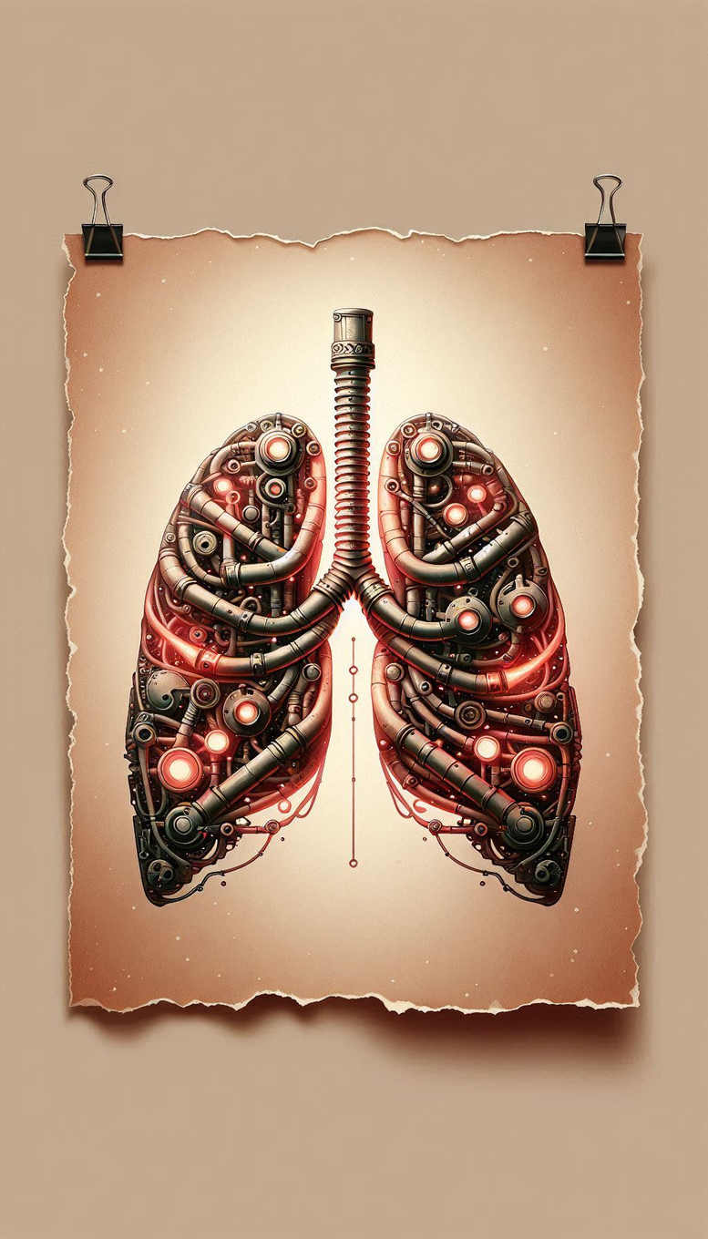 An AI-generated tattoo project presenting a biomechanical interpretation of human lungs, merging anatomy with steampunk machinery. The composition centers on two lungs fashioned from interlocking gears, pistons, pipes, and circuit-like conduits that follow the bronchi in a balanced, mirror-symmetric arrangement. A segmented trachea rises between them, its joints and couplings echoing vintage engineering, while circular nodes glow with red highlights, imparting a kinetic pulse to the piece. The artist deploys crisp linework, bold shadows, and metallic textures to achieve a convincing chrome-and-rust aesthetic against a warm, parchment-like backdrop. Although rendered in color, the piece relies on black-and-grey tonal contrasts for depth, making it adaptable as a tattoo that can age gracefully on skin. The design functions as a high-impact tattoo design for larger canvases such as the ribs, chest, or back, and it also serves as a dramatic pattern-driven cover-up option for darker existing ink. Symbolically, the lungs symbolize life and breath, while the machinery speaks to resilience, evolution, and the fusion of biology with technology—an archetypal theme in meaningful tattoos and custom tattoo design. In line with trends in contemporary body art, this concept nods to Japanese-style and industrial aesthetics, while remaining accessible to a broad audience seeking unique tattoo ideas—whether interpreted as a small, bold statement or expanded into a full sleeve project. As an AI-generated project, it illustrates how digital concepts can translate into ink-ready design language, marrying precision, texture, and storytelling in a single, striking image that resonates with fans of fine line tattoo, realism, or pattern-rich tattoo styles.