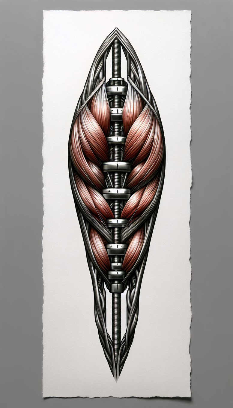 Patterned mechanical spine tattoo concept blends anatomy with biomechanical engineering in a vivid full-color presentation. A blade-shaped silhouette houses a central spine composed of interlocking metallic plates, threaded rods, and bolts, flanked by flowing red muscle fibers rendered with meticulous shading to convey depth and vitality. Gray cables curve along the outer edges, framing the engine-like core and reinforcing the sense of movement within a static design. The technique combines realistic shading, crisp linework, and smooth gradients to achieve a tattoo design that reads as lifelike yet unmistakably engineered. The palette uses saturated crimson tones for the musculature against cool steel grays, creating a high-contrast composition ideal for a bold tattoo on the forearm, upper arm, or calf. The piece nods to Japanese-style tattoo structure and biomechanical traditions while embracing a contemporary, graphic pattern sensibility that can be extended into larger work such as sleeves or back pieces. Symbolically, the contrast between living tissue and mechanical hardware speaks to themes of resilience, transformation, and the fusion of human and machine. When used as a cover-up, the dense linework and varied shading can effectively mask prior ink while preserving a dramatic silhouette; if a client prefers a black-and-grey version, the red muscle can be toned down to grayscale with targeted negative space to maintain legibility. This concept is an AI-generated tattoo project, illustrating how AI-generated tattoo projects can inspire custom tattoo design workflows, offering meaningful tattoos, versatile patterns, and stand-out realism suitable for small tattoos or expansive body art. In print and online portfolios, the image supports keywords such as tattoo, tattoo design, meaningful tattoos, fine line tattoo, lotus flower tattoo, infinity tattoo, tribal tattoo, rose tattoo design, small tattoos, flower tattoos, custom tattoo design, Japanese style tattoo, black and grey, realistic tattoo, body art, and ink, reinforcing searchability while presenting a bold, technical, and aesthetically charged body art concept.
