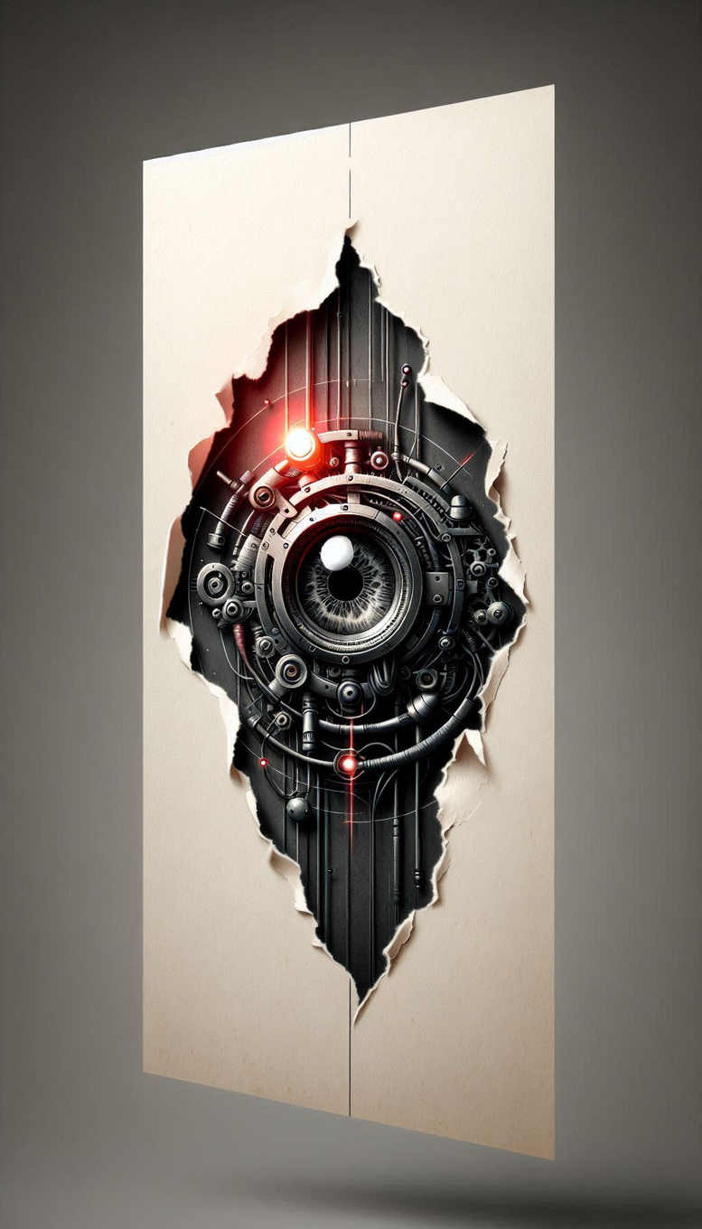 This piece presents a striking collision of flesh and machine rendered as a wall-torn reveal of a cyborg eye. At the center a detailed mechanical iris sits within concentric rings of gears, valves, and tubing, all executed in black and grey with selective red LED accents that draw the gaze inward. The torn paper edges frame a dark interior, creating a sense of depth and three-dimensionality as if the body were pierced to reveal engineering beneath. The composition blends industrial forms with organic symbolism, turning an old scar into a focal point for a future tattoo design. The circular ocular motif suggests perception, vigilance, and the fusion of mind and machine, a theme that resonates with modern meaning tattoos and custom tattoo design. The image is rendered with realistic shading, crisp highlights, and a subtle photographic texture that translates well to tattoo concepts, especially for large-scale body art. In practice, this design reads as a bold, full-coverage piece due to the dense black areas around the torn edges, making it particularly suitable for cover-up tattoos on the arm, shoulder, or chest. The AI-generated tattoo project pushes the boundaries of pattern and mechanical ornament, inviting the client to adapt the geometry and circuitry to personal symbolism. Through careful line work and contrast, a tattoo artist could translate the gearwork into a high-contrast black and grey tattoo, preserving the metallic feel while ensuring longevity on skin. This design aligns with contemporary trends in realism and cybernetic aesthetics and expands the repertoire of meaningful tattoos that fuse machine imagery with an expressive narrative. In summary, this AI-generated concept offers a compelling tattoo design option for clients seeking a unique, cover-up-ready piece that communicates strength, precision, and a contemporary interpretation of body art. keywords: tattoo, tattoo design, meaningful tattoos, fine line tattoo, tribal tattoo, black and grey, realistic tattoo, custom tattoo design, body art, ink, square cropping, visual impact.