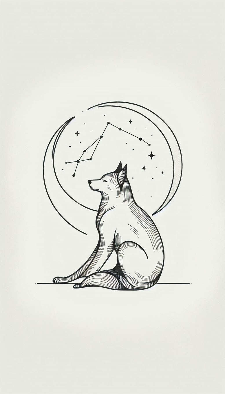 This AI-generated tattoo project presents a minimalist fine-line concept featuring a seated dog gazing upward toward a celestial arrangement. The main subject is rendered in crisp black ink with delicate line work that captures the dog’s posture and expression through subtle contouring and light shading via hatching rather than heavy fills. Behind the figure, a crescent circle and circular arc provide a framing device that elevates the composition, while a small constellation of stars—connected by fine lines and dotted nodes—evokes a night-sky motif. The balance between negative space and line density is intentional, creating a design that reads as refined body art suitable for small to mid-sized placements such as the forearm, upper arm, or back of the neck. The symbolism is meaningful: the dog stands as loyalty and guardianship; the moon embodies cycles and intuition; the star map suggests guidance and destiny, making this a thoughtful tattoo design for someone seeking personal meaning. In terms of style, the piece aligns with black-and-grey, fine-line approaches and nods to Japanese-inspired restraint in composition, delivering a timeless aesthetic that pairs well with both minimalist and more elaborate tattoo plans. This concept is adaptable—the canine figure could be swapped for a wolf or fox, additional stars could extend the sky, or the circle framing could be extended into a larger mandala for a larger canvas. While designed as a standalone piece, it also serves as an effective cover-up option thanks to its clear outlines and ample negative space, enabling strong ink coverage of faded or unwanted tattoos beneath. Overall, the project exemplifies current trends in meaningful tattoos, small tattoos, and custom tattoo designs, while maintaining broad appeal for body art enthusiasts who favor clean lines, ink control, and a timeless black-and-grey palette. The design also harmonizes with other motifs such as lotus flower tattoo or rose tattoo design, offering flexibility for ink enthusiasts exploring infinity, tribal, or Japanese-style tattoo concepts; it represents a modern, enduring approach to tattoo design and body art.