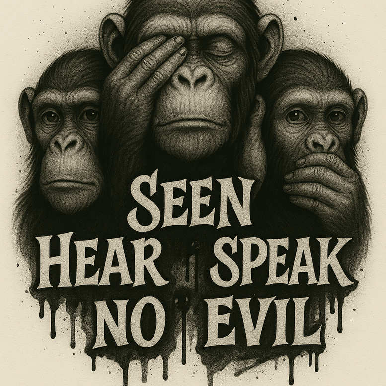 This AI-generated tattoo project presents a trio of chimpanzees rendered in black and grey realism, their faces arranged around a bold, dripping typography phrase that reads ‘Seen Hear I Speak No Evil.’ The composition balances portraiture with typographic art, using meticulous shading, fine line work for fur texture, and soft gradient transitions to preserve legibility on skin. The central figure covers its eyes while the flanking figures cover ears and mouth, echoing the see-no-evil, hear-no-evil, speak-no-evil trope and inviting interpretation about perception, restraint, and truth-telling. The dripping letters introduce a graphic pattern that anchors the design and gives it a rebellious, poster-art edge, while the grayscale palette ensures versatility as a meaningful tattoo design for a range of placements such as the chest, back, or sleeve. Because the image relies on large dark blocks and high contrast, it naturally holds strong cover-up potential for older ink; the bold negative space around the figures helps conceal prior markings while maintaining a striking silhouette. The piece leans into realistic tattoo aesthetics rather than cartoony rendering, yet it preserves a modern edge suitable for contemporary body art collections. As a custom tattoo design concept, it blends animal symbolism with typography to convey themes of sight, hearing, and speech, prompting viewers to reflect on what is seen, what is heard, and what remains unsaid. For discoverability, the concept embraces keywords used by tattoo enthusiasts and collectors—tattoo, tattoo design, meaningful tattoos, fine line tattoo, lotus flower tattoo, infinity tattoo, tribal tattoo, rose tattoo design, small tattoos, flower tattoos, custom tattoo design, Japanese style tattoo, black and grey, realistic tattoo, body art, ink. Given the subject’s darkness and the saturated typography, the project is explicitly oriented toward cover-up applications, offering a proven path to rejuvenate worn or unwanted ink while delivering a bold, memorable statement.