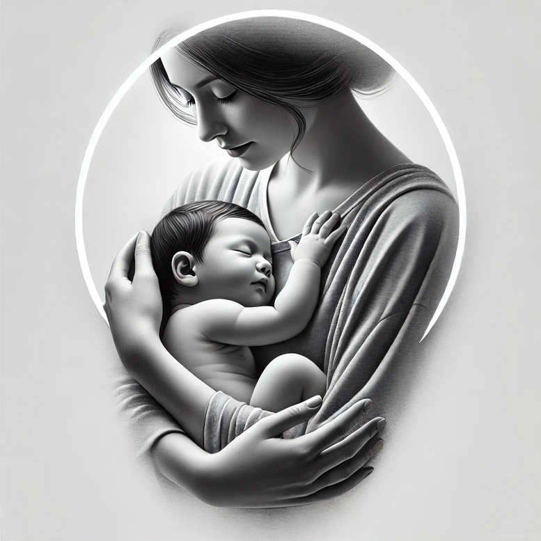 Rendered as an AI-generated tattoo project, this portrait captures a mother cradling her sleeping baby in grayscale realism. The composition centers on the mother’s arms forming a protective cradle, while the infant rests with tiny hands and closed eyes, the circular halo framing their heads to suggest protection, sanctity, and an eternal bond. The shading shifts from soft midtones to deep blacks, with carefully controlled gradients that mimic ink on skin, allowing for smooth transitions across skin tones. The design leans toward realism rather than cartoonish bold lines, using fine line shading to emphasize delicate facial features, hair strands, and the gentle folds of fabric in the mother’s clothing, suitable for a small tattoo or a larger piece on the shoulder or chest. The halo acts as negative space guidance, helping the tattoo artist align the piece and balance composition, while the monochrome palette ensures longevity and timeless appeal. This concept translates well into black and grey ink, preserving dimensional depth with contrast that will age gracefully as body art. The subject matter — motherhood, nurture, and protective love — makes it a meaningful tattoo choice, ideal for commemorating family bonds, adoptions, or milestones, and it can be adapted to various styles, including Japanese style tattoo influences or a subtle infinity tattoo motif. It also invites personalization by adding lotus flower tattoo accents or small flower tattoos around the main portrait to soften edges or integrate color later. For clients seeking a refined, versatile design, this template fits well within custom tattoo design workflows and is suitable for both small tattoos and larger canvases. These AI-generated tattoo projects reflect current trends toward intimate portraits in tattoo art, offering a flexible baseline that can be adjusted in scale, line weight, and shading to achieve a bespoke result that remains faithful to the core message of love and protection.