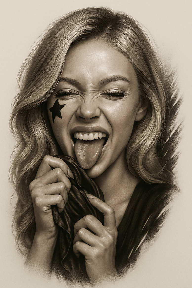 This AI-generated tattoo project presents a cheek star tattoo design rendered in black ink on a warm sepia-toned portrait. The star on the left cheek anchors the composition, its crisp silhouette contrasting against the skin’s soft shading. The subject’s playful tongue adds kinetic energy while hair and a crumpled cloth provide textural contrast that guides the eye toward the central motif. The design embraces graphic minimalism: a single, crisp star executed with solid black fill, a hallmark of blackwork and geometric patterns in tattoo design. This project explores how a small symbol can function as a meaningful tattoo design on a visible canvas, balancing negative space with bold ink to achieve legibility in both close-up photography and body art contexts. The color palette emphasizes black and grey tones to mimic ink on skin, producing a timeless look that remains legible over time. Symbolically, the star suggests guidance, ambition, and personal milestones, making it a meaningful tattoos choice for someone seeking a simple yet impactful mark. Placement on the cheek ensures high visibility while remaining easily concealable by hair or makeup when desired, a practical consideration for cover-up discussions in certain contexts. From a technical perspective, the image demonstrates controlled contrast, edge crispness, and careful skin-tone rendering, illustrating how graphic shapes can translate cleanly into tattoo lines and fills. This AI-generated tattoo project offers a modern take on a classic motif, inviting tattoo enthusiasts to imagine a bold, wearable pattern centered on a compact design. Keywords to explore include tattoo, tattoo design, meaningful tattoos, fine line tattoo, lotus flower tattoo, infinity tattoo, tribal tattoo, rose tattoo design, small tattoos, flower tattoos, custom tattoo design, Japanese style tattoo, black and grey, realistic tattoo, body art, ink.